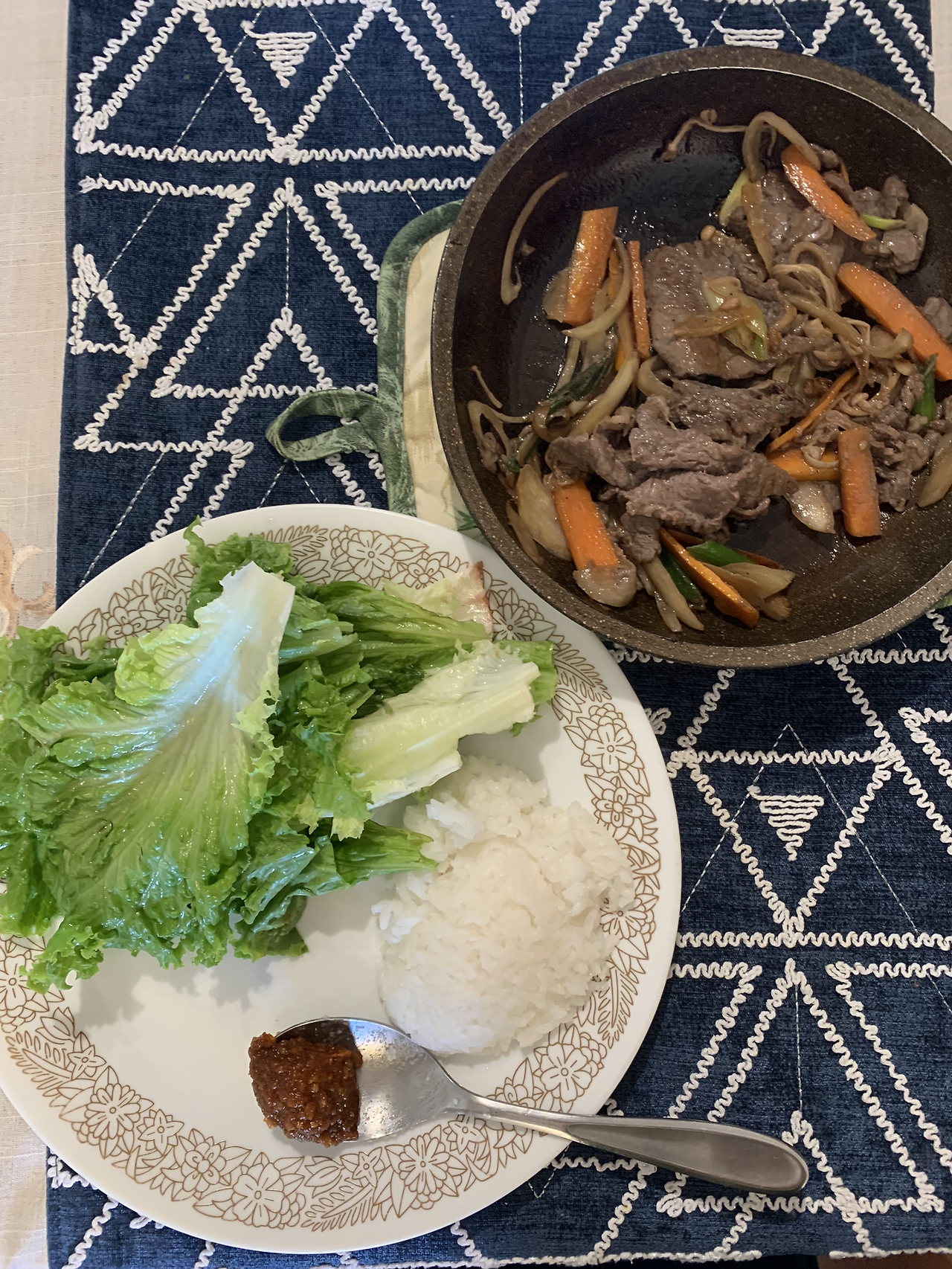 저녁은 불고기 쌈. 오늘 치 야채를 먹기 위해 상추도 함께.