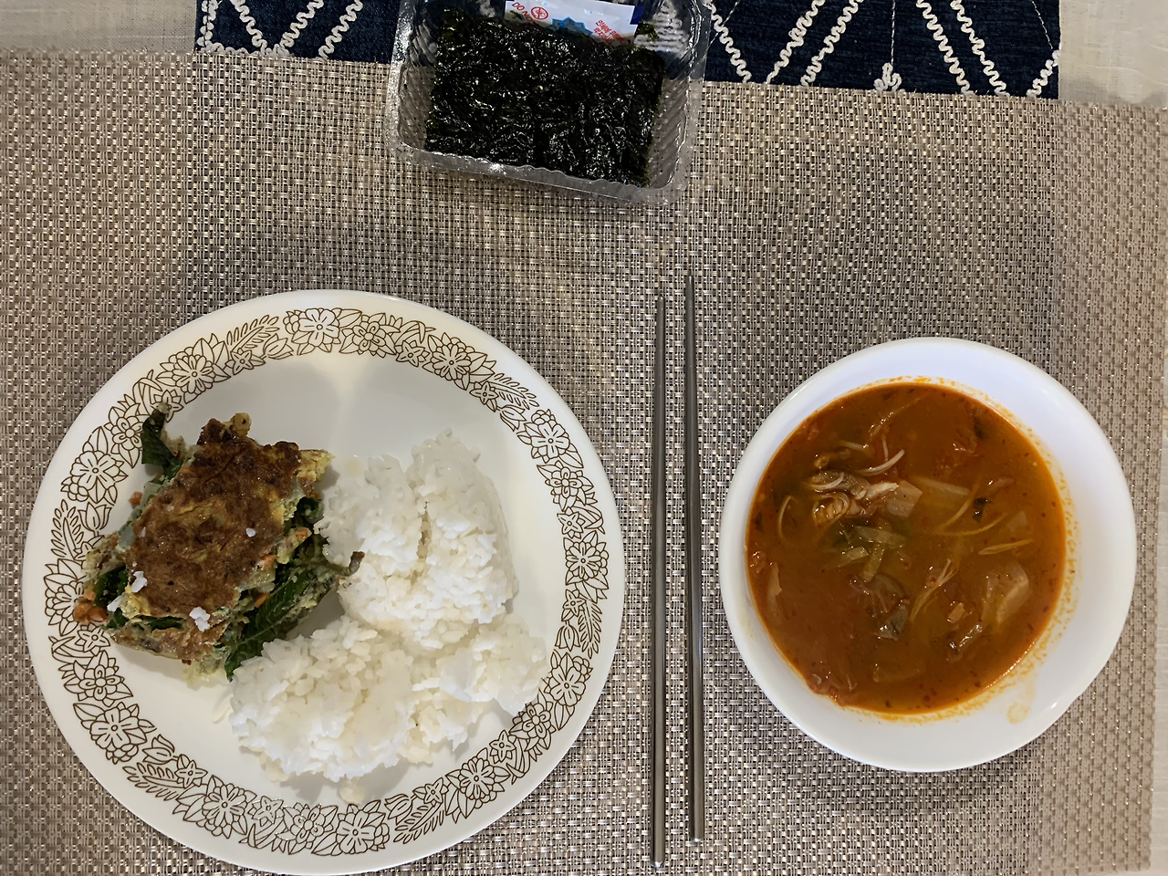 한숨 잤더니 두통이 사라졌다. 잠을 못 자서 그런 건가,, 깨서 저녁으로 밥과 김치찌개.