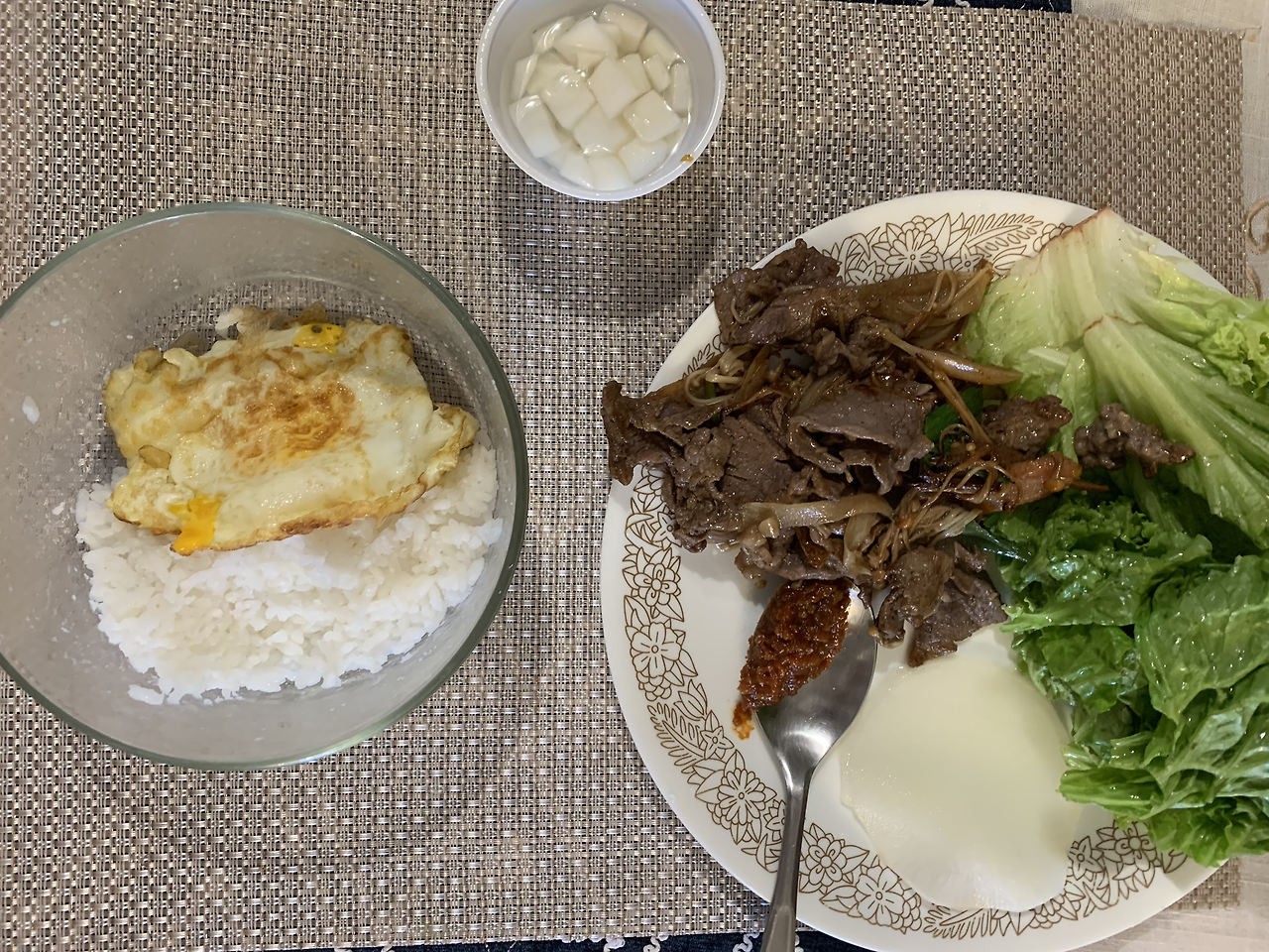 13일의 금요일! 13일이라는 건 전혀 상관없고 금요일이라 행복하다. 아침은 요거트에 냉동 블루베리에 꿀. 간식으로 모카빵! 점심은 불고기와 쌈채소. 불고기는 간장에 설탕만 있으면 맛이 나는 게 신기하다. 저녁은 크림 파스타와 오렌지!