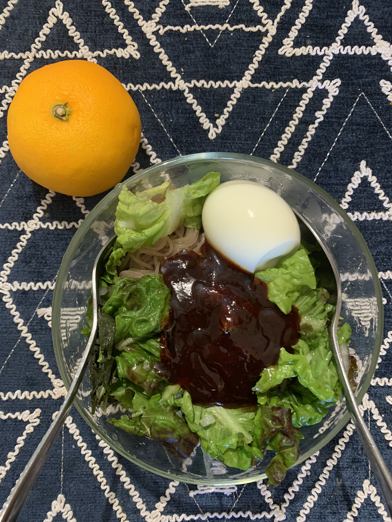 점심은 비빔냉면. 오늘은 정말 정말 덥다. 산책을 나가고 싶었는데 무리다. 이런 날씨에 운동했다가 일사병 걸릴 거다. 간식으로 아이스크림.