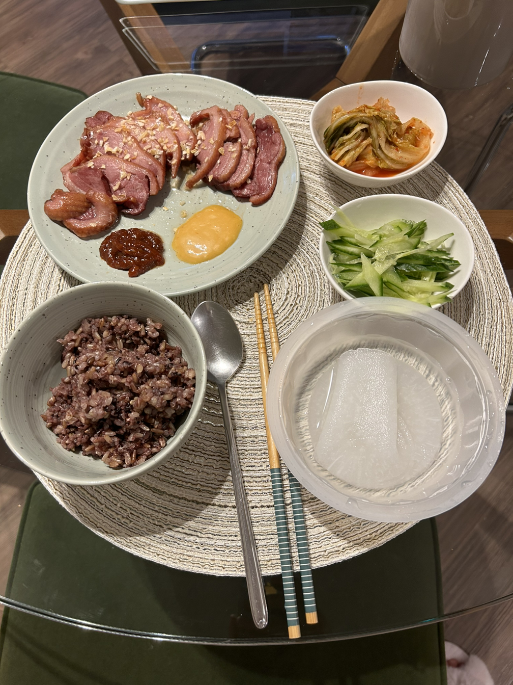 저녁은 H마트 장 본 거 티 내는 (ㅋㅋㅋ) 오리 고기 정식. 오리 고기가 몸에 좋다고 들은 기억이 있는데 이유가 기억이 안 난다. 진짜 맛있는데..! 비싸다ㅜㅜ. 3등분으로 소분해서 사진에 보이는 저 양이 $10 어치다. 맛있는데 자주는 못 먹겠다ㅠㅠ.
