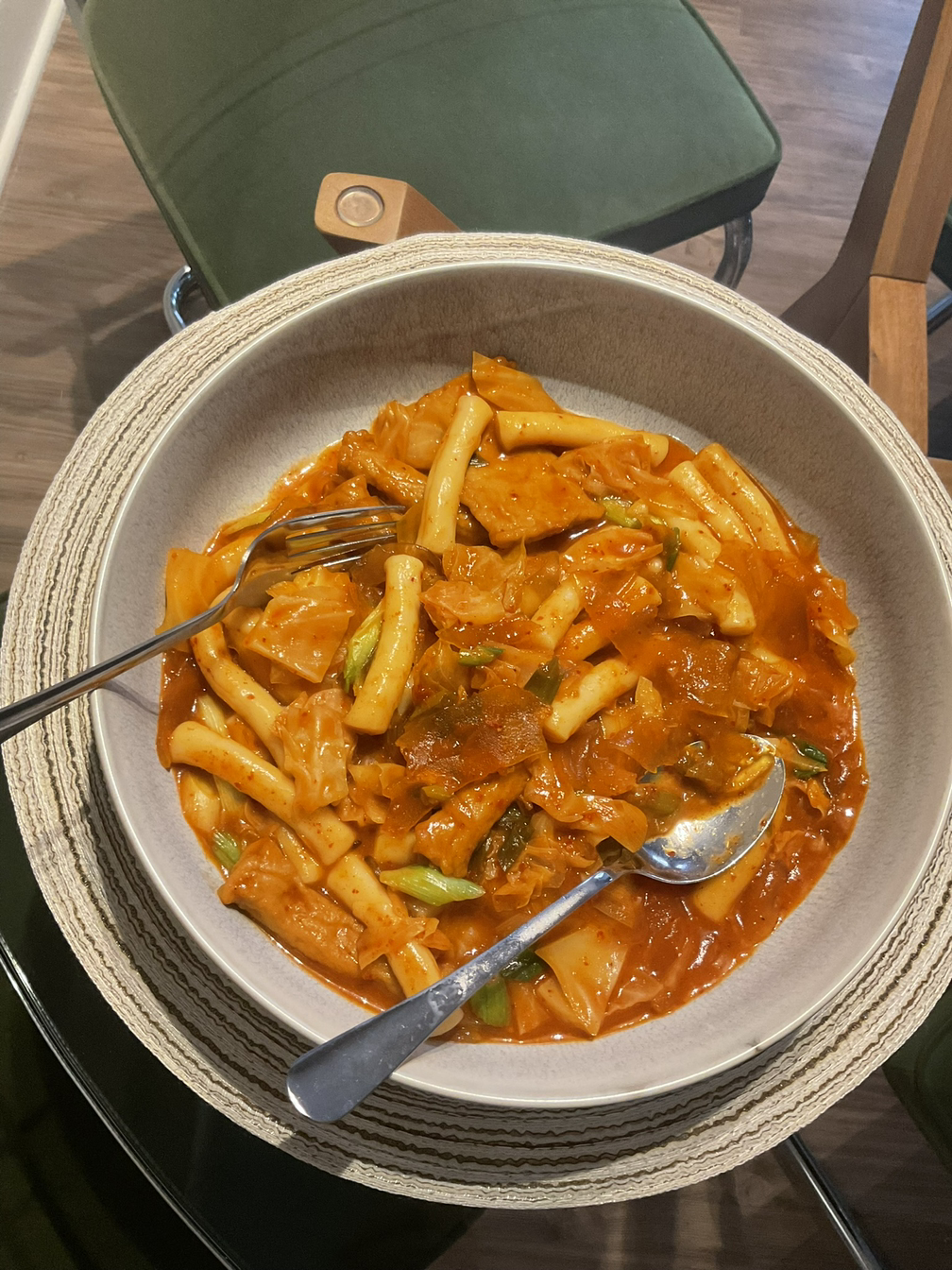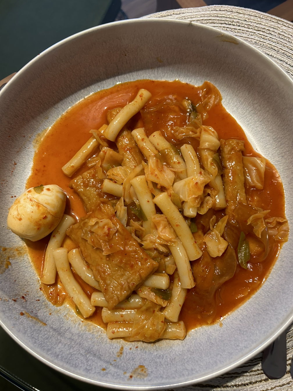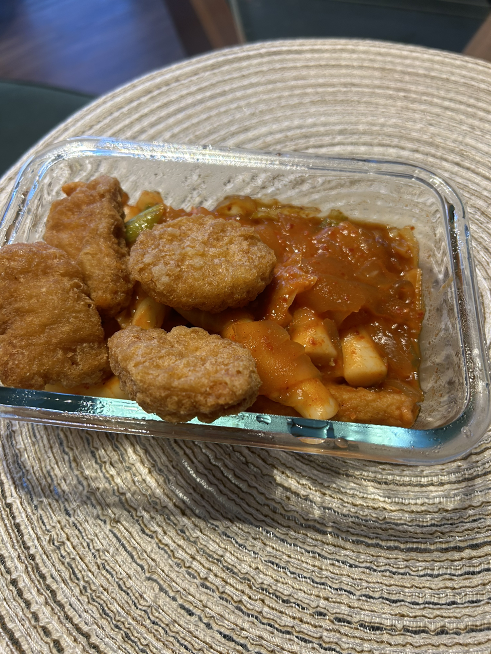 아점으로 어제 먹고 남은 떡볶이. 어제보단 못해도 오늘도 맛있어. 양이 너무 많아서 치킨 너겟 추가해서 저녁까지 먹었다. 하루종일 떡볶이만 먹네.
