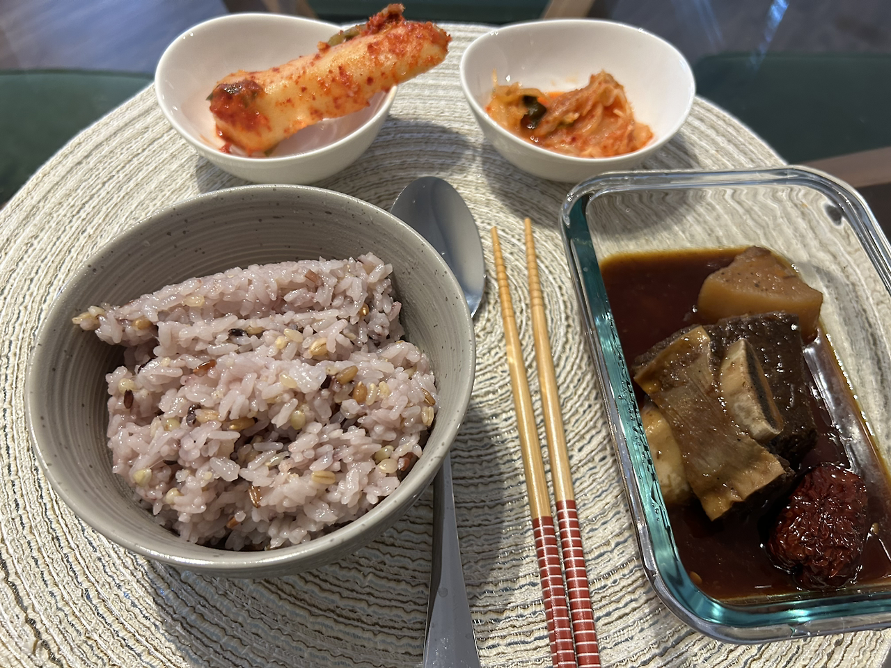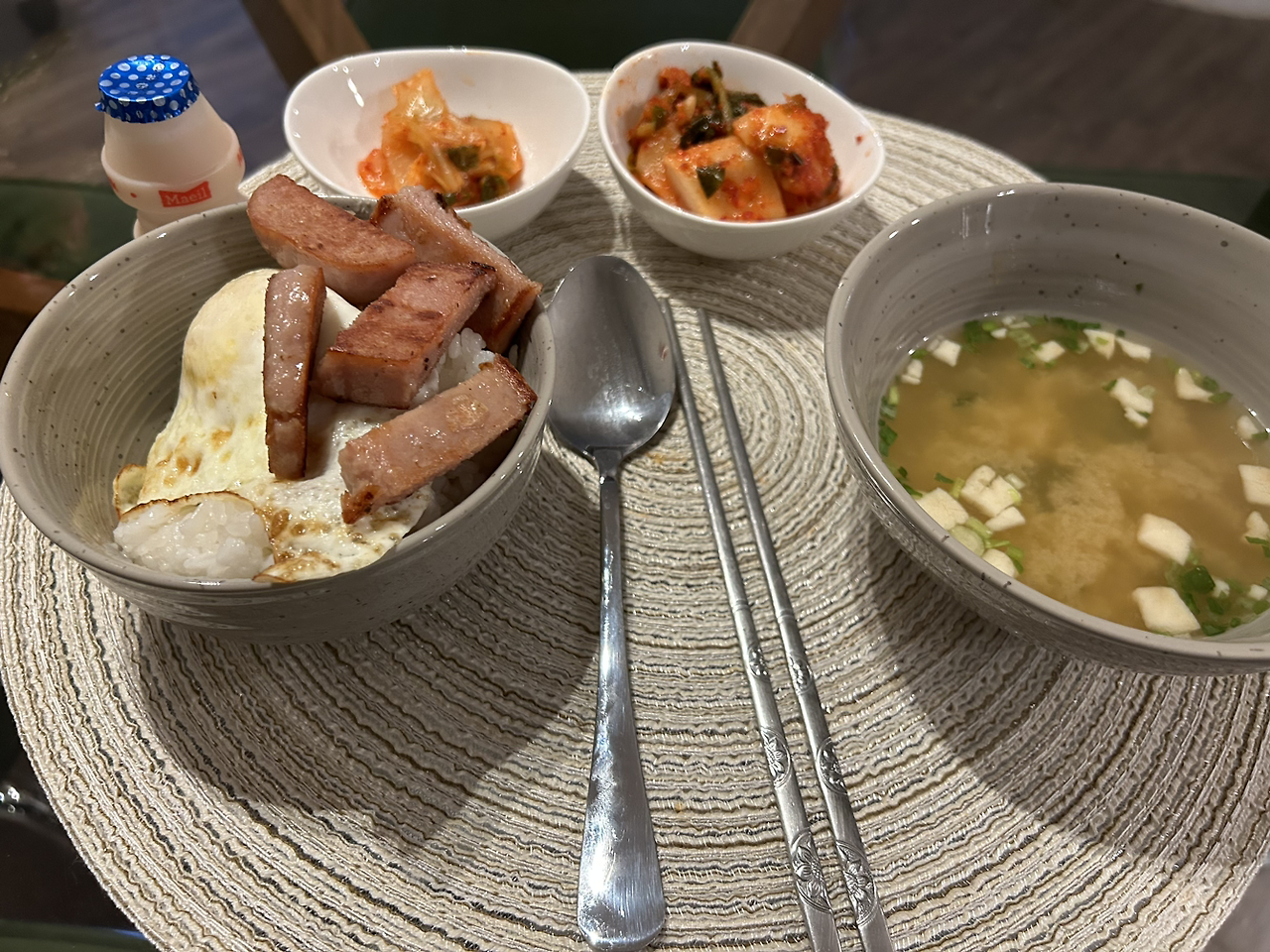 항상 동일한 아침 메뉴. 어제 남긴 만두와 양상추로 점심. H마트에서 사 온 떡으로 간식. H마트에서 장 보고 나면 삶의 질이 올라가는 것 같다. 저녁은 H마트에서 산 (^^,,,) 김치와 미소국과 밥! 이 정도면 집밥이 아니라 H마트 밥이라고 불러야 하겠다.