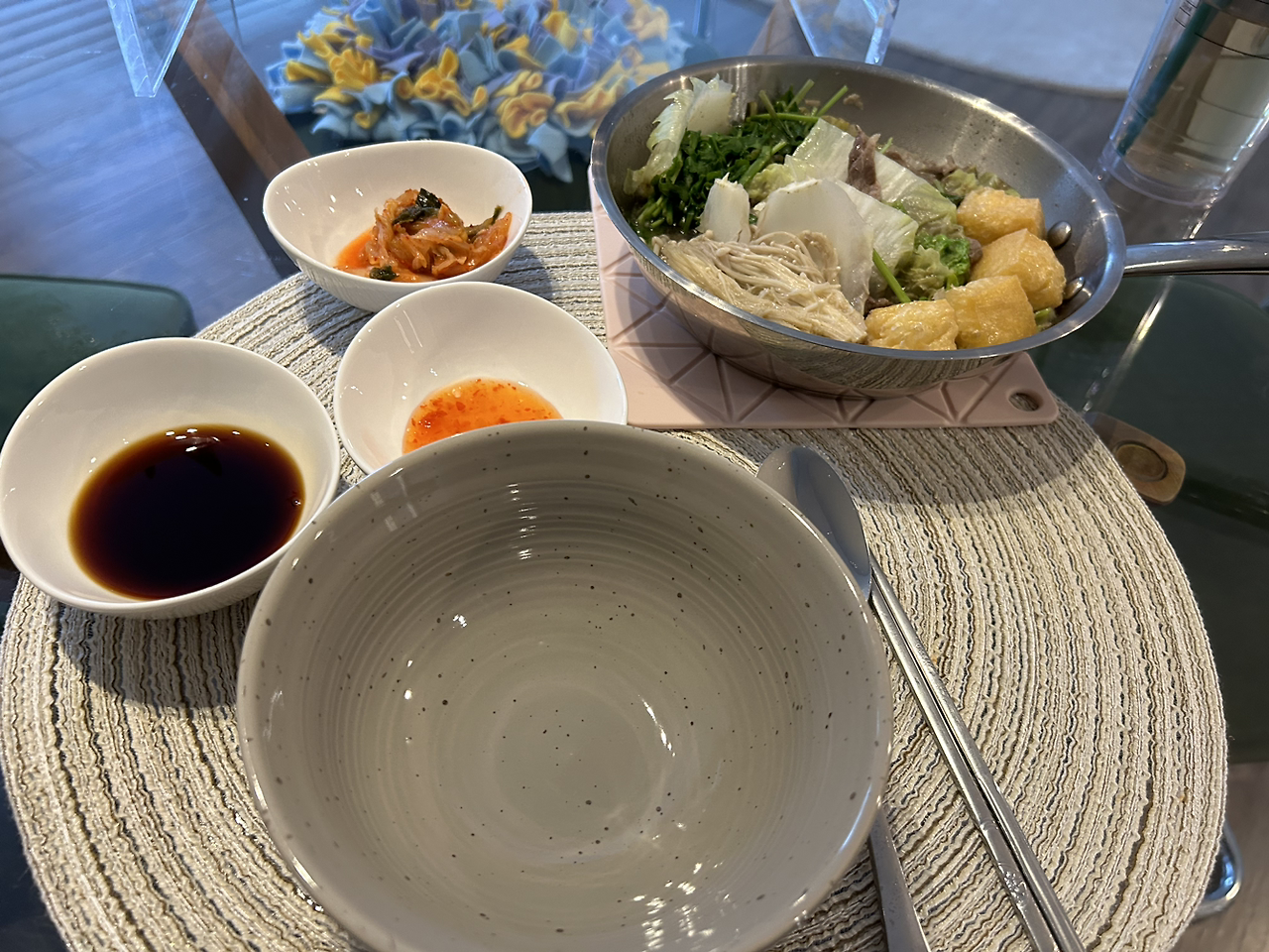 주말이라 기분이 좋아서 잉글리시 브렉퍼스트를 만들어봤다. 소시지와 콩 말고는 평소와 동일하긴 하다. 쌀쌀한 날씨에 어울리는 핫초코도 마셔주고 점심은 저번에 배달시킨 갈비찜 마지막으로 남은 걸 먹었다. 저녁은 샤브샤브를 먹었는데 의외로 간장 소스보다 스위트칠리소스가 더 잘 어울렸다!