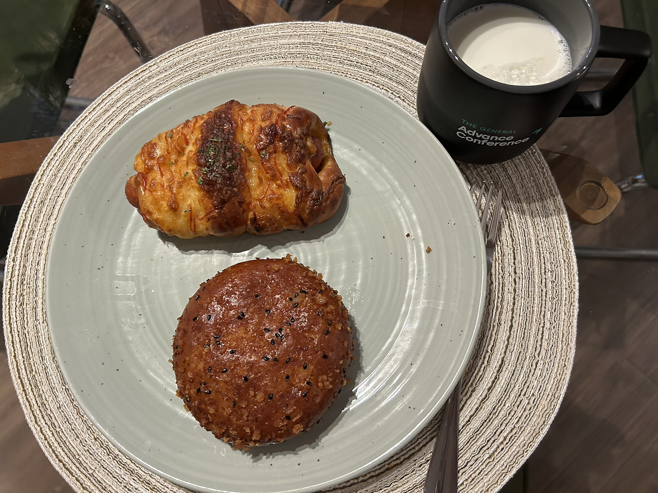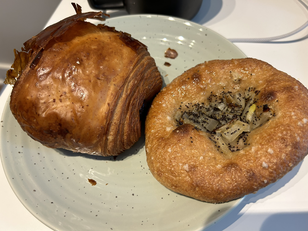아침으로 요거트~지만 아침에 일 보고 근처 베이커리에서 빵 사 올걸 알아서 조금만 먹었다. 초콜릿 크루아상과 비알리..?라는 빵을 먹었다. 크루아상이 맛있었는데 다음엔 플레인으로 먹어보고 싶다.