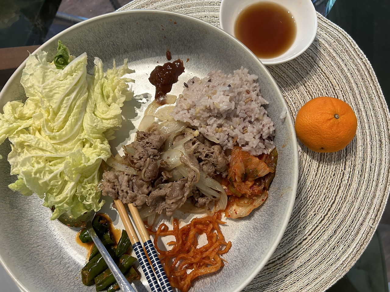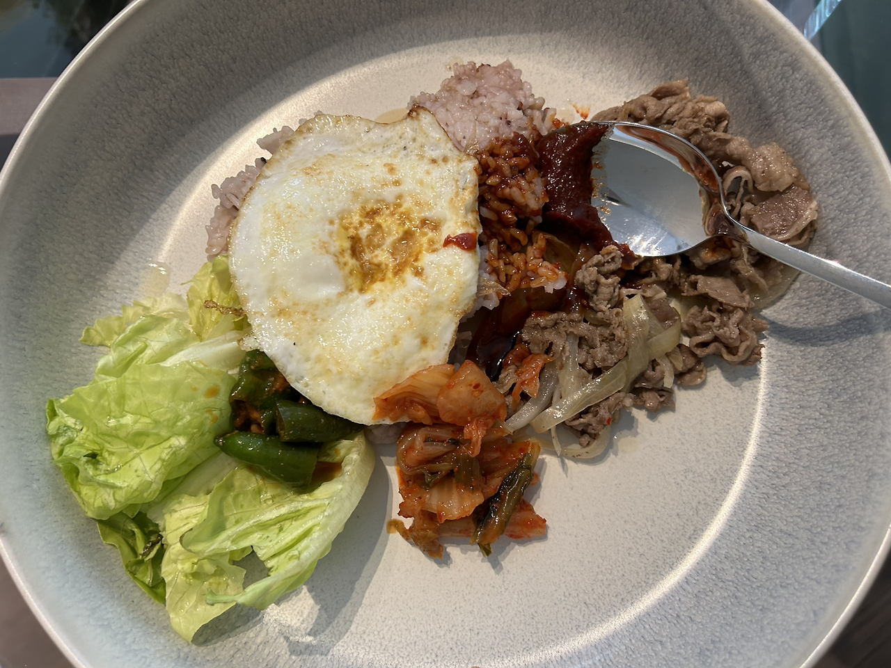 이 날부터였을까요 본격적으로 입이 터진 게… 건강해 보이지만 양이 많은 아침을 시작으로 점심으로 우삼겹을 넣은 비빔밥. 저녁은 살얼음 동동 물냉면~.