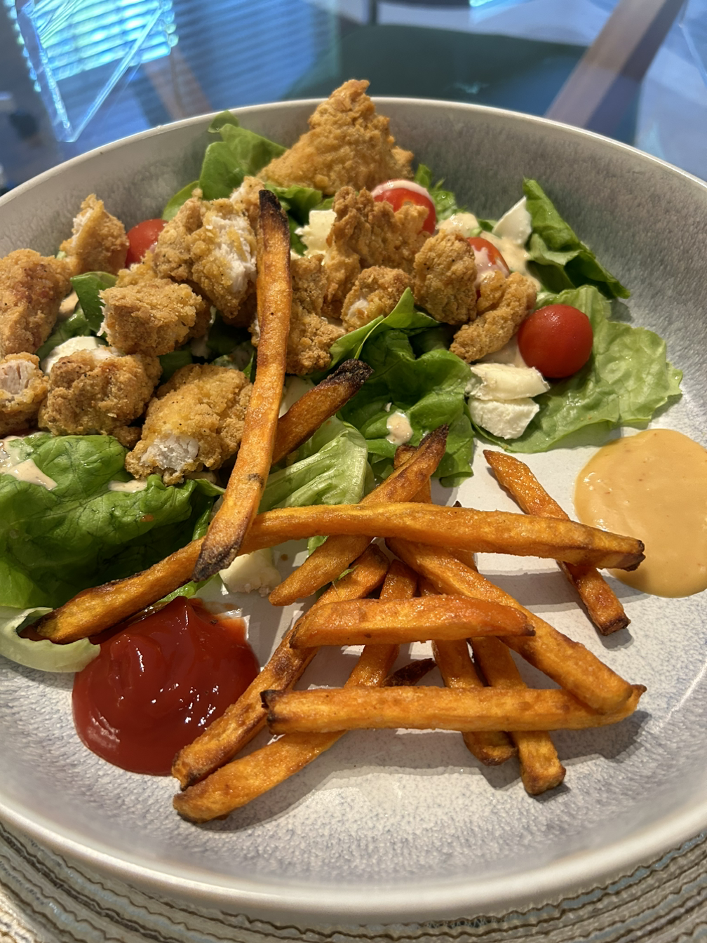 어제저녁으로 먹고 남은 스팸마요덮밥으로 아침. 점심은 라볶이. 떡볶이를 먹으면 무조건 살이 찐다ㅠㅠ. 하지만 내가 세상에서 가장 좋아하는 음식인걸ㅠㅠ. 저녁은 양심상 샐러드인데 야채보다 치킨너겟이 더 많다.