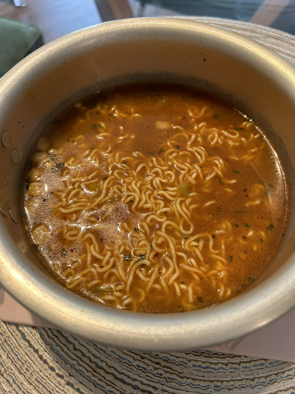 아침은 빵~ 어제 장본 마켓 안에 한국빵집이 있어서 사 왔다. 부지런히 마셔주는 우유까지. 점심은 라면인데 처음 보는 라면이 있길래 궁금해서 사봤다. 맛은 덜 매운 마라탕 라면? 고수맛도 났는데 난 고수극호맨이라 맛있게 먹었다. 근데 또 먹을 만큼 맛있진 않았다.