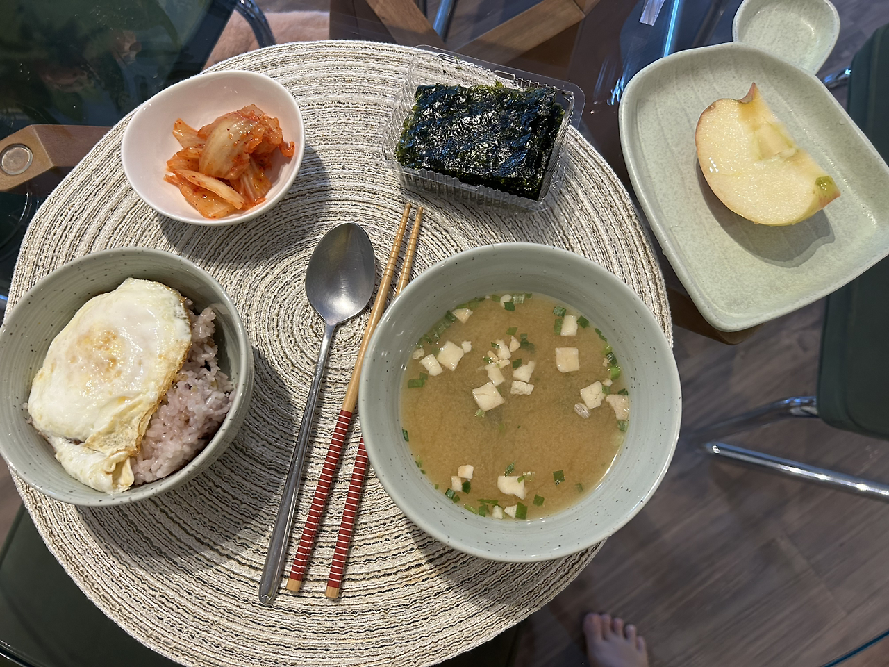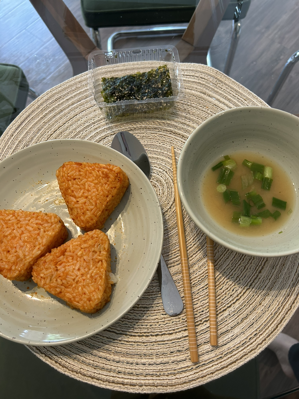 오랜만에 한식 아침 식사~~. 냉동 삼각김밥을 점심으로 먹었는데 양에 비해 가격이 비싸서 다시 사진 않을 것 같다. 호기심 비용,,