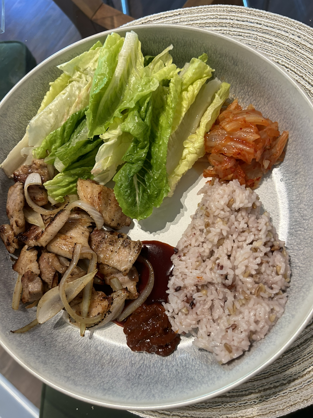 저녁은 삼겹살 구이!! 쌈 싸 먹으니 맛있다.
