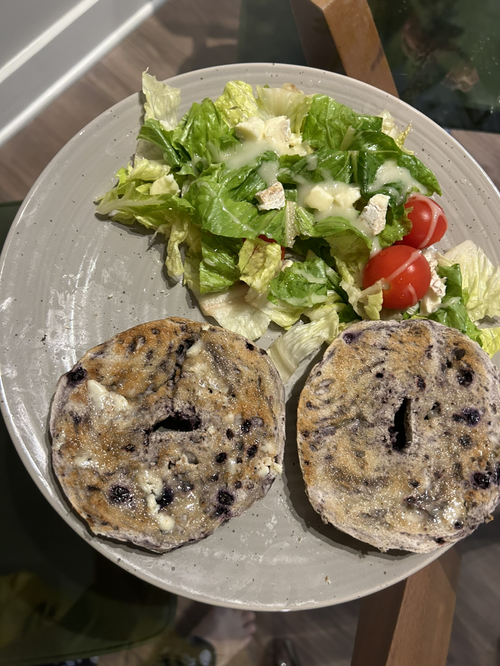 아침은 블루베리 베이글과 샐러드~. 점심은 약속이 있어서 외출하는 바람에 스킵. 저녁은 h마트에서 사 온 잡채.