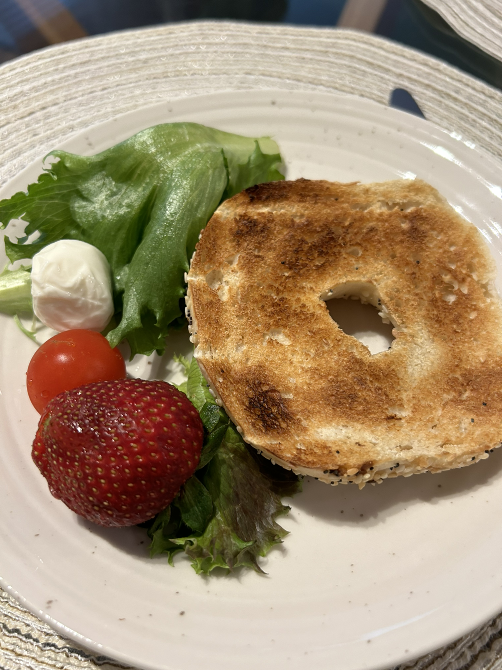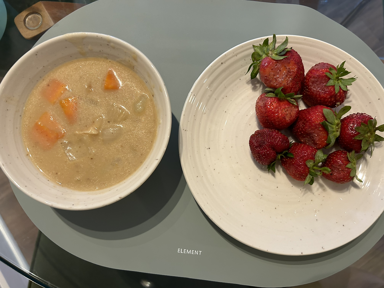 아침은 베이글과 파머스 마켓에서 산 딸기. 저녁은 과일과 냉동실에 있던 튀김류+단팥빵을 먹었는데 양이 너무 많았다. 이래서 배고플 때 밥 먹으면 안 된다ㅠㅠ.