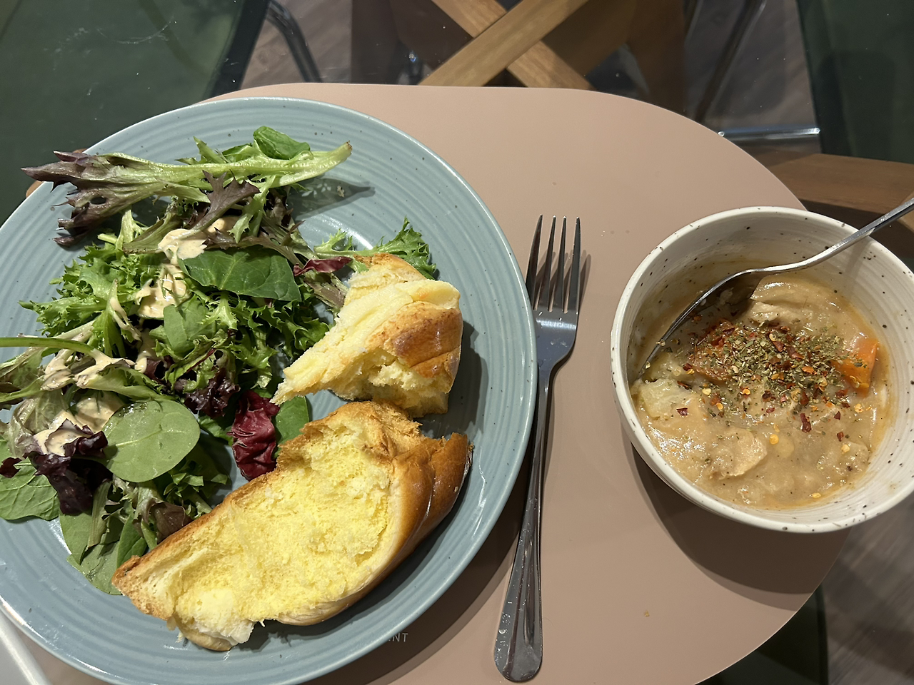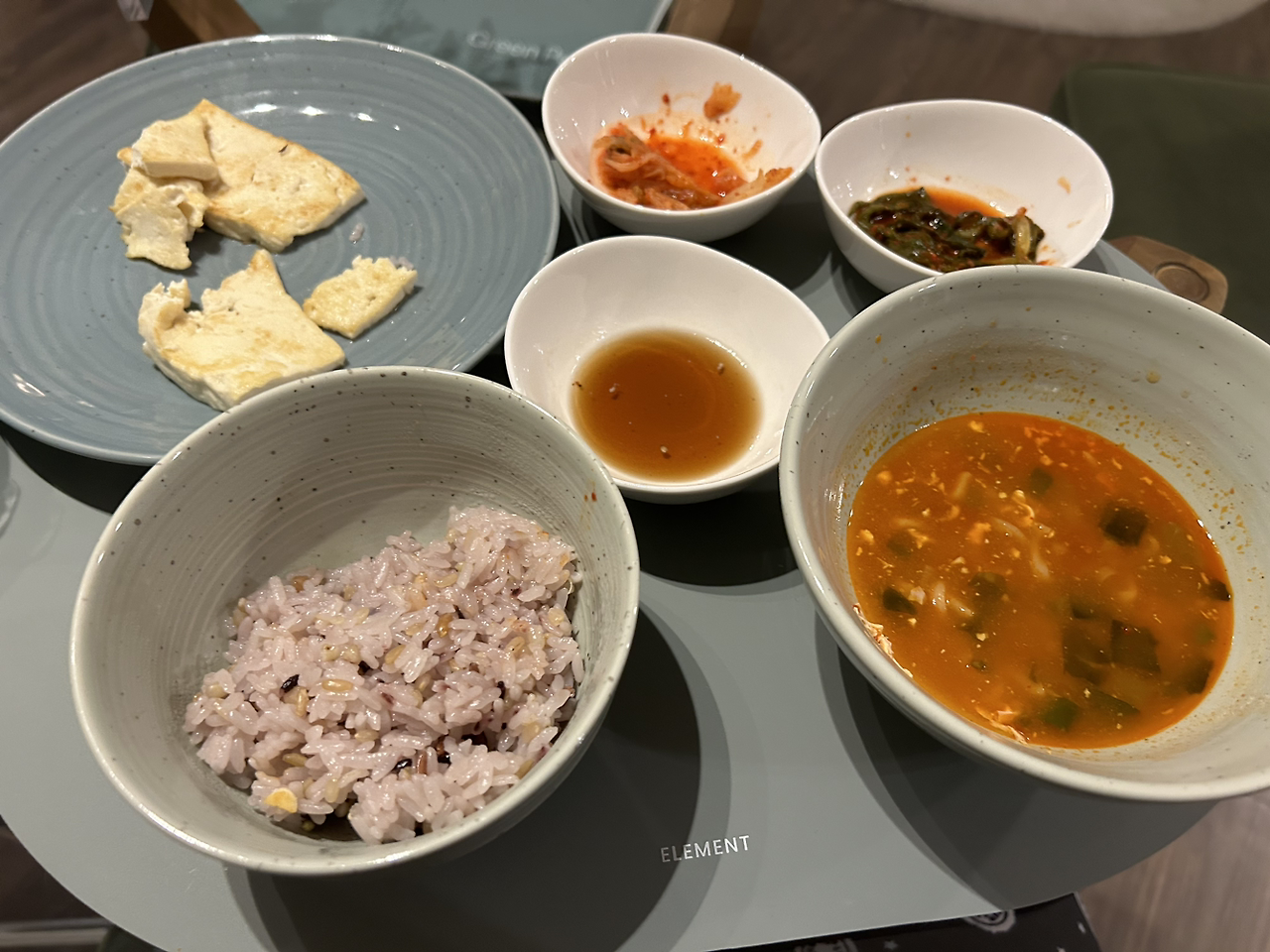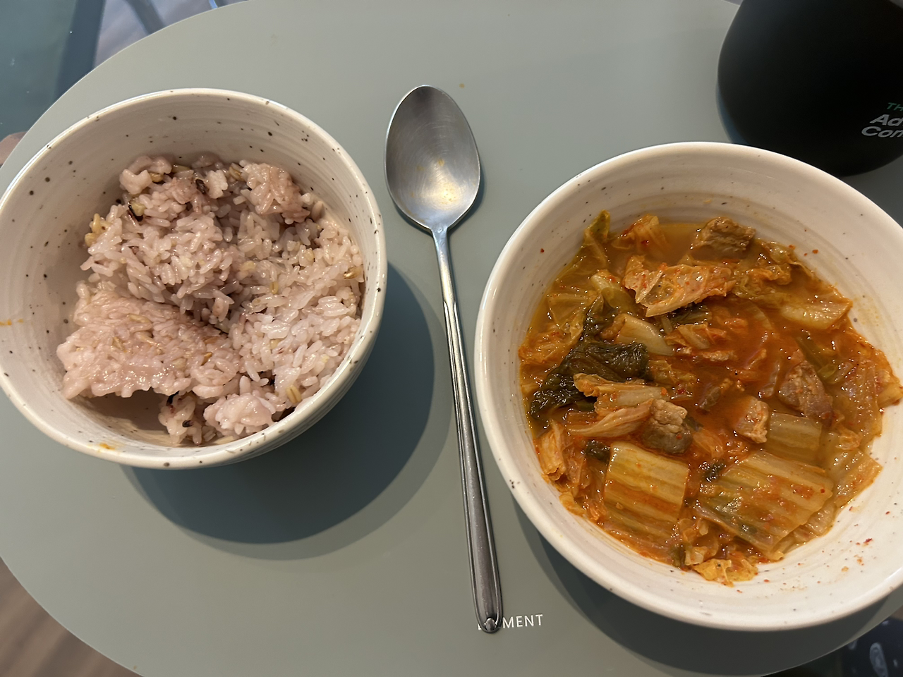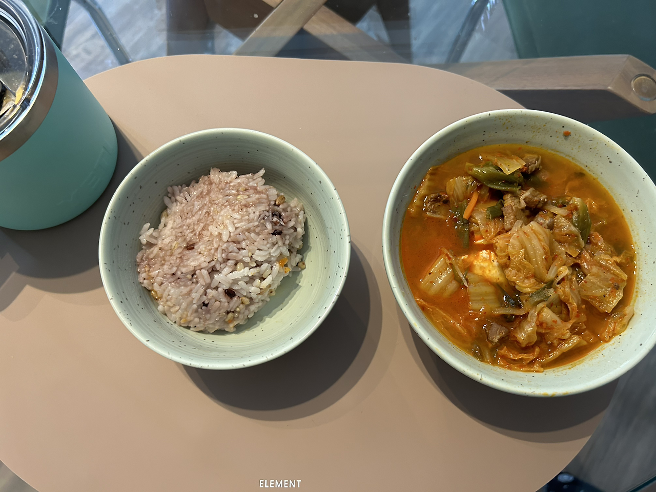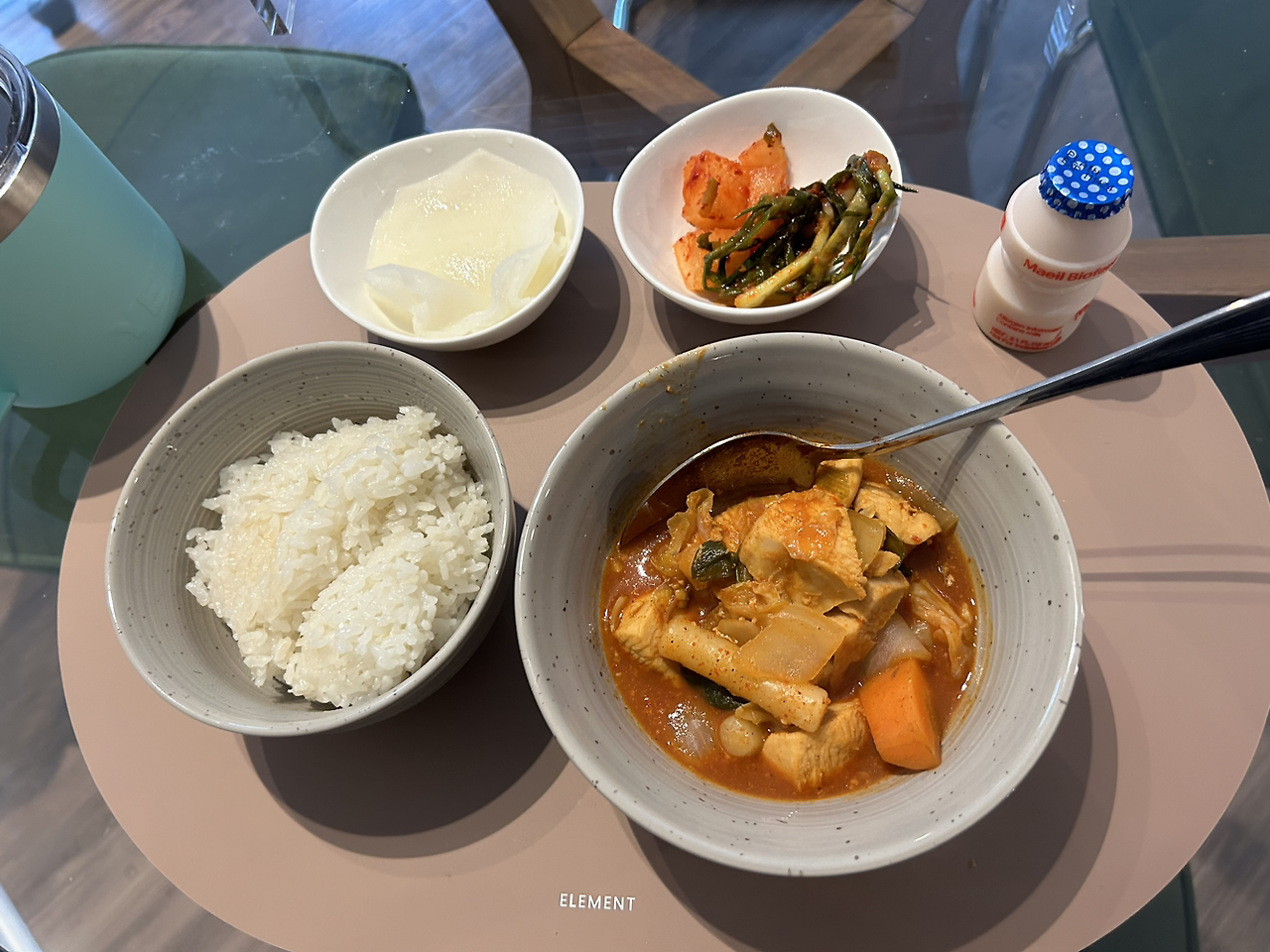 어제 샐러드가 너무 맹맹해서 치킨텐더 하나만 구웠다, 하나만,,, 전에 만들어놓은 김치찌개~. 한 번에 잔뜩 만들어놓고 꺼내먹는 게 꽤 편하다.
