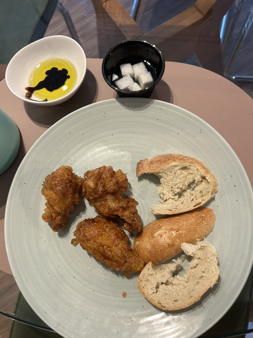 아침은 삶은 만두~. 화가 안 풀려서 치킨으로 빡침 비용 지출,, 저녁은 치킨 남은 것과 소분해 둔 빵 남은 거 조금.