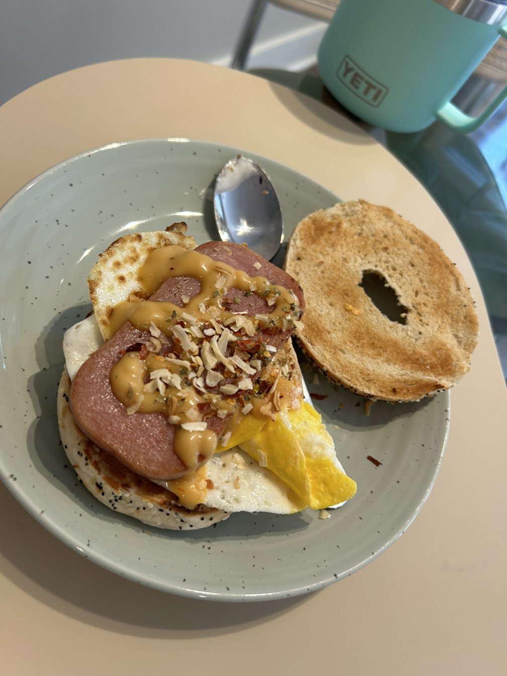 나름 베이글 샌드위치. 주말이라 브런치 느낌을 내봤다. 중국마켓에서 장 보고 푸드코트에서 음식 픽업 했다. 판다 익스프레스 같은 시스템이었는데 음식 이름이 안 써져 있어서 감으로 골랐다. 직원분들도 중국어만 하셔서 손가락으로 표시해 가면서 골랐다. 색다르고 재밌는 경험~.
