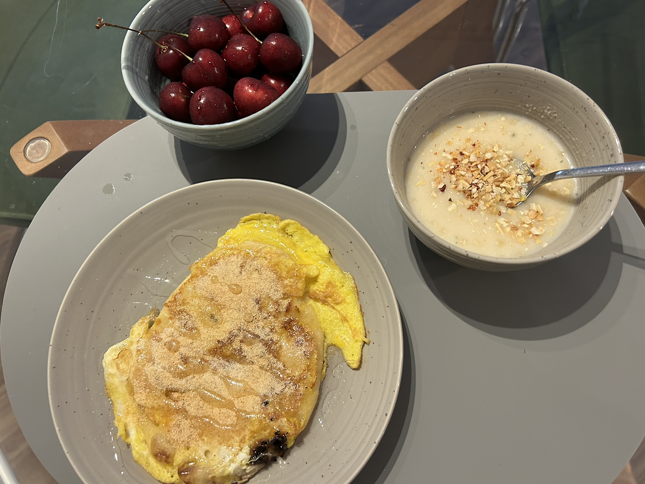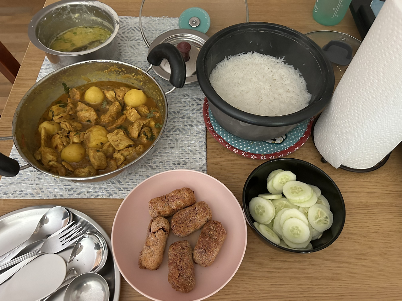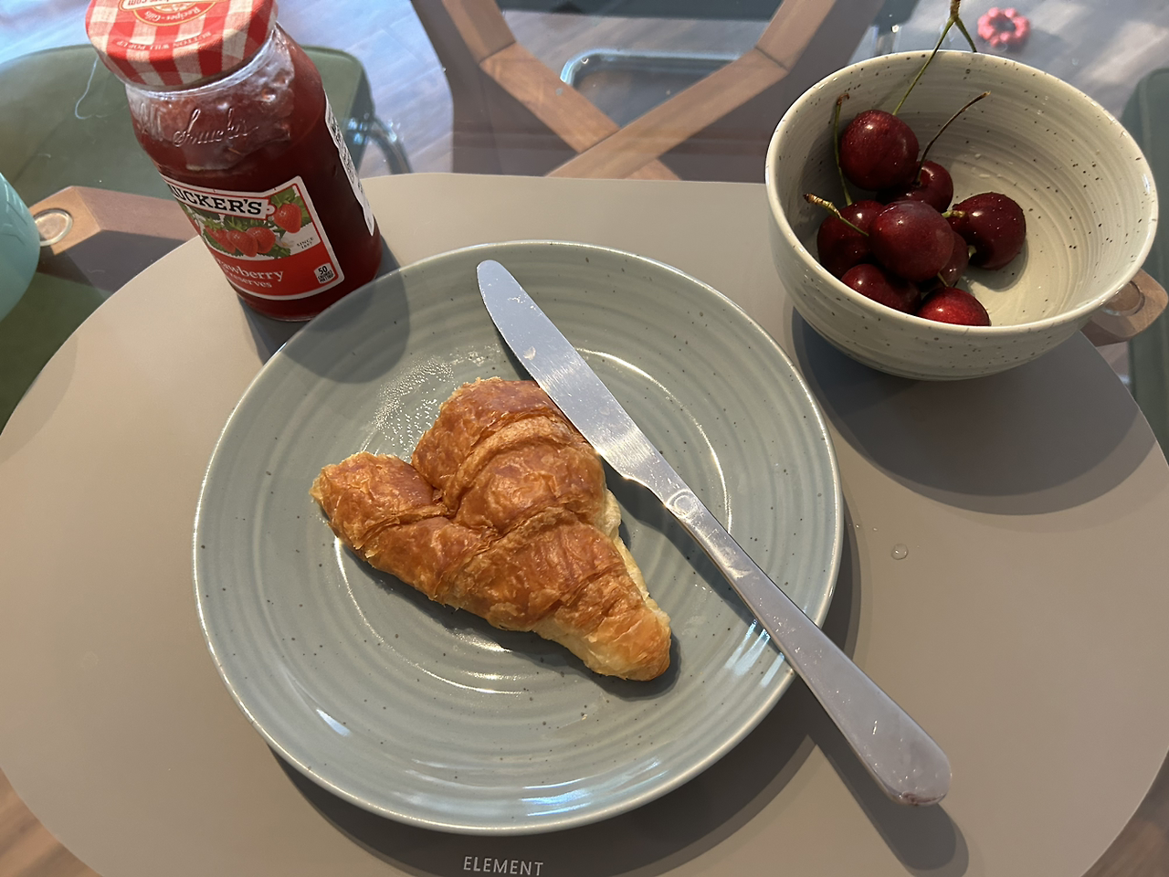 아침으로 크로와상, 잼, 그리고 체리. 점심은 친구가 초대해 줘서 인도 음식을 먹었다. 요리가 취미인 친구라 맛도 있고 흔히 먹어본 인도 음식이 아니라 더 색다르고 좋았다! 두 그릇 먹어서 배가 터질 것 같았다.