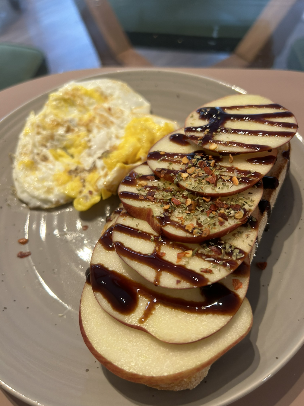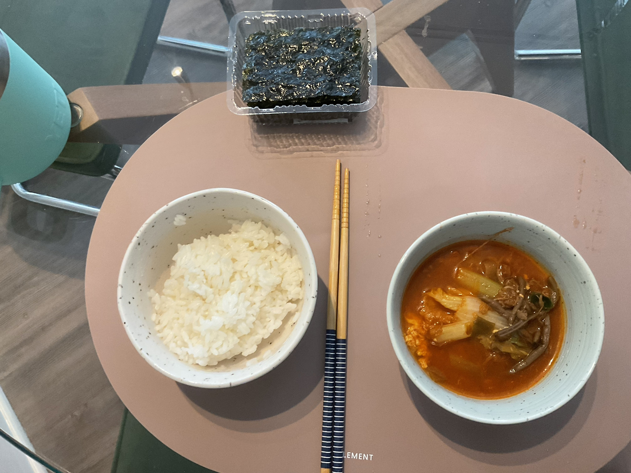 빵에 사과 올리고 발사믹 뿌린 간단한 아침인데 맛있다. 점심은 어제와 동일한 육개장. 남은 건 냉동실에 얼려놨다.