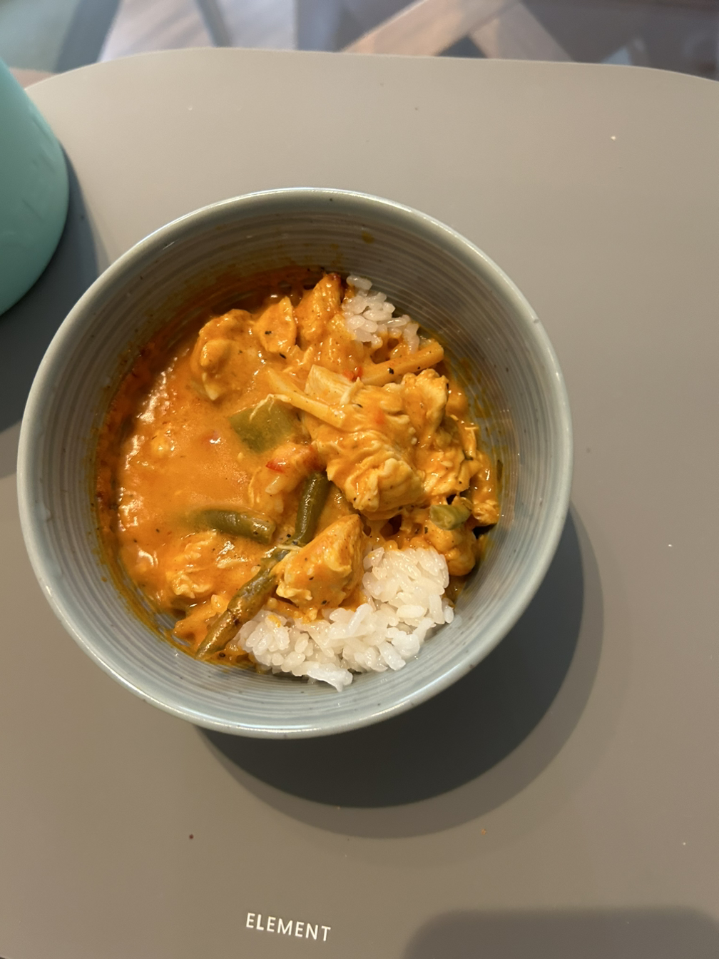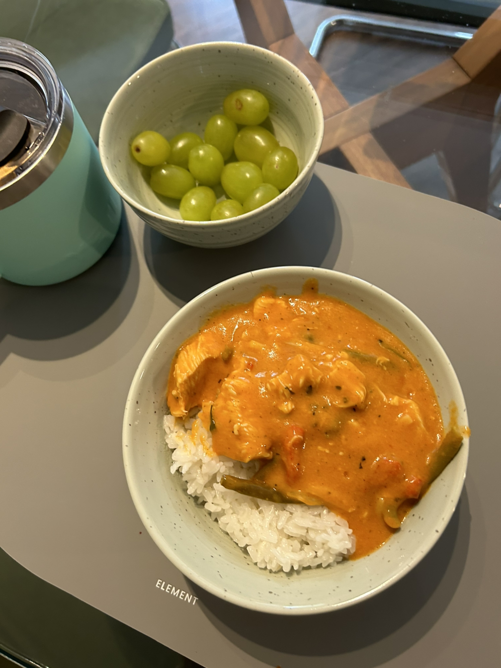 요즘 아침에 배가 고파서 거한 아침을 먹는다. 대신 오전에 간식을 별로 안 먹는다. 점심은 레드커리.