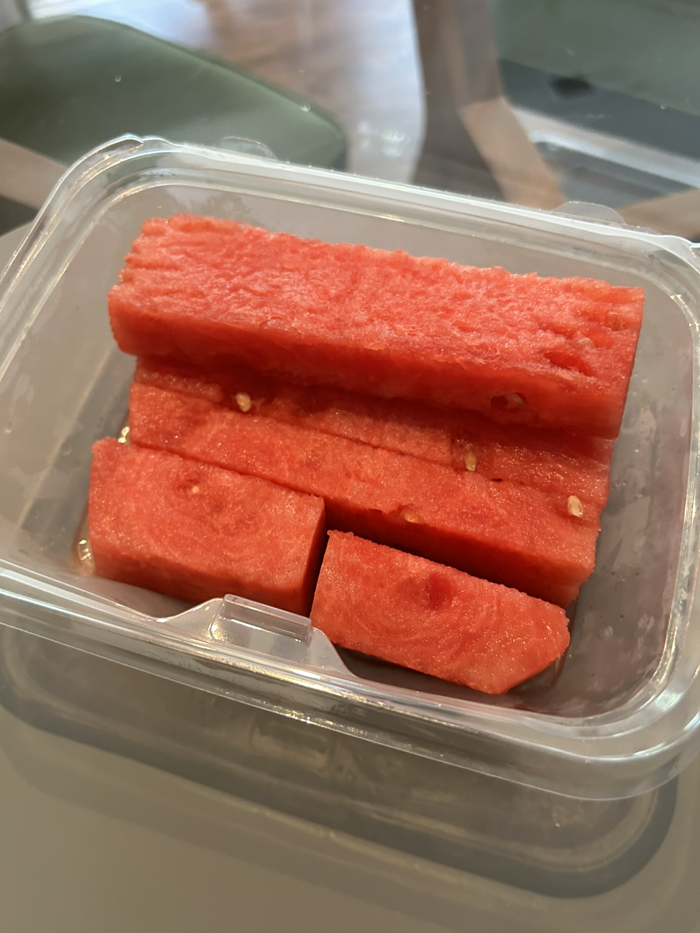 냉동 타코로 아침. 살사를 만들까 하다가 귀찮고 양파 토마토 따로 먹나 섞어먹나 그게 그거 아닐까 싶어서 그냥 먹었다. 점심은 어제와 동일. 장 볼 때 수박을 샀다. 저렇게 제일 맛있는 부분만 $3. 얼마에 파는데 괜찮은 것 같다. 저녁은 샐러드를 먹고 싶었는데 튀긴 음식만 더 먹은 것 같다.