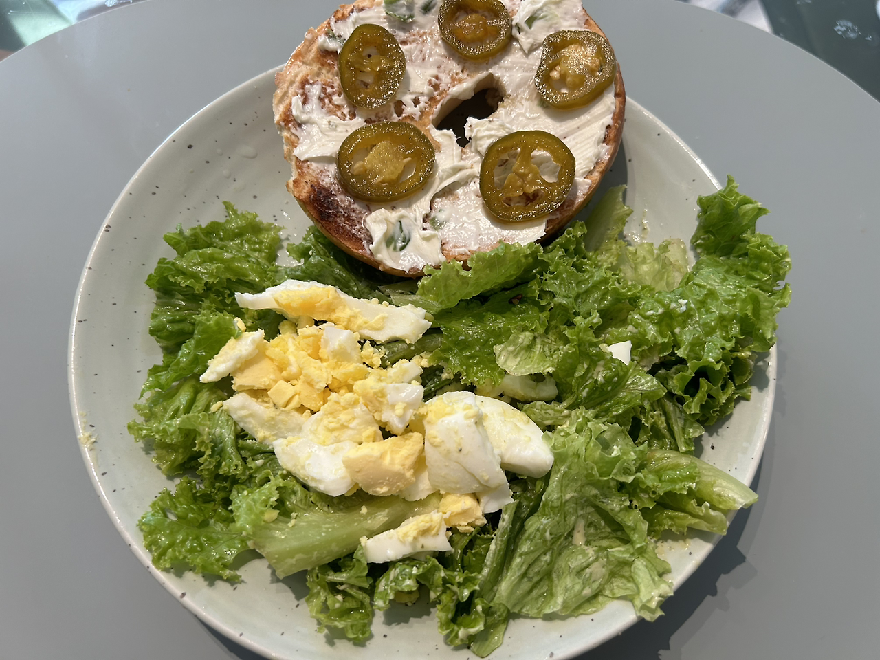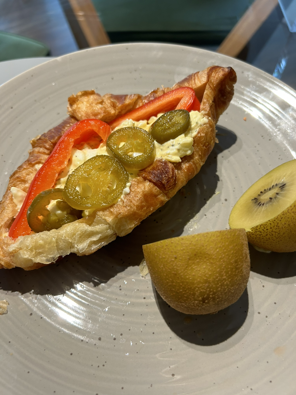크르와상 에그 샌드위치로 아침. 트레이더조 할라피뇨가 맵지 않고 맛있다. 피클도 맛있다는 듯. (안 먹어봄)