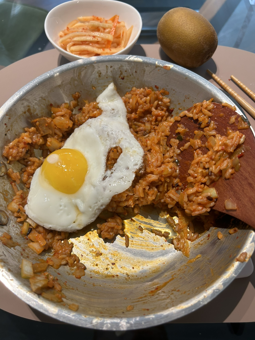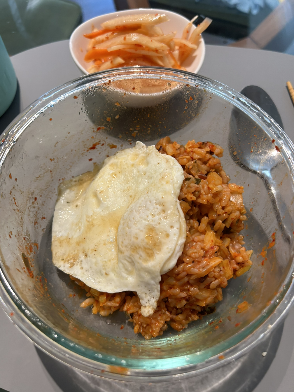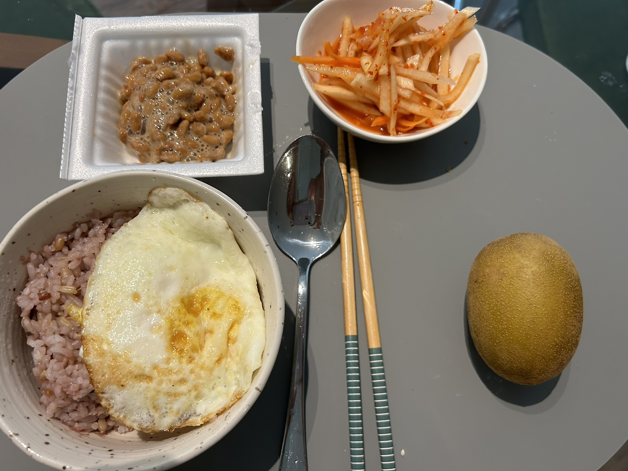 아또베 근데 계란을 추가한. 점심은 어제 남은 김치볶음밥. 저녁 시리얼,,
