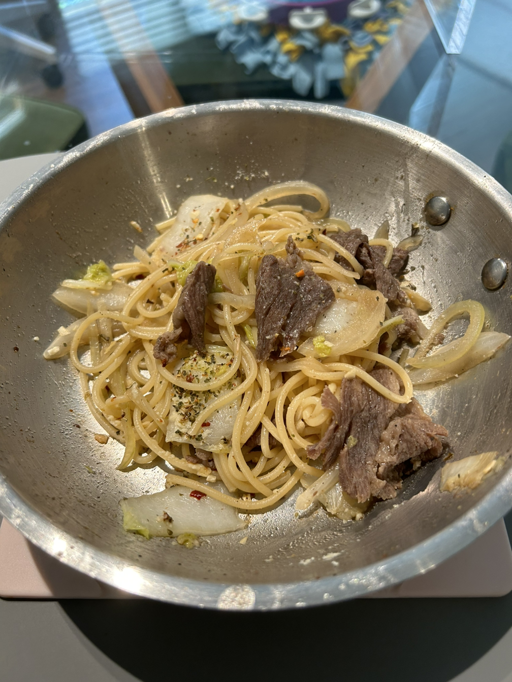 대충 간장 파스타? 느낌으로 만들었는데 양이 많아 보여서 점심 저녁으로 먹었다. 간식으로 에그타르트.