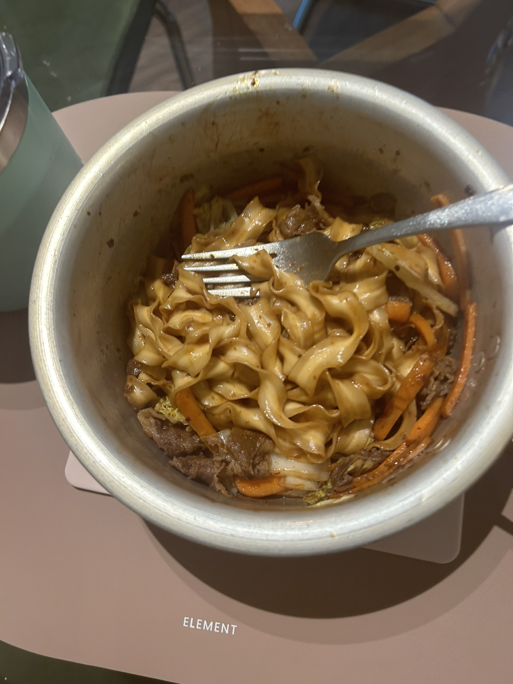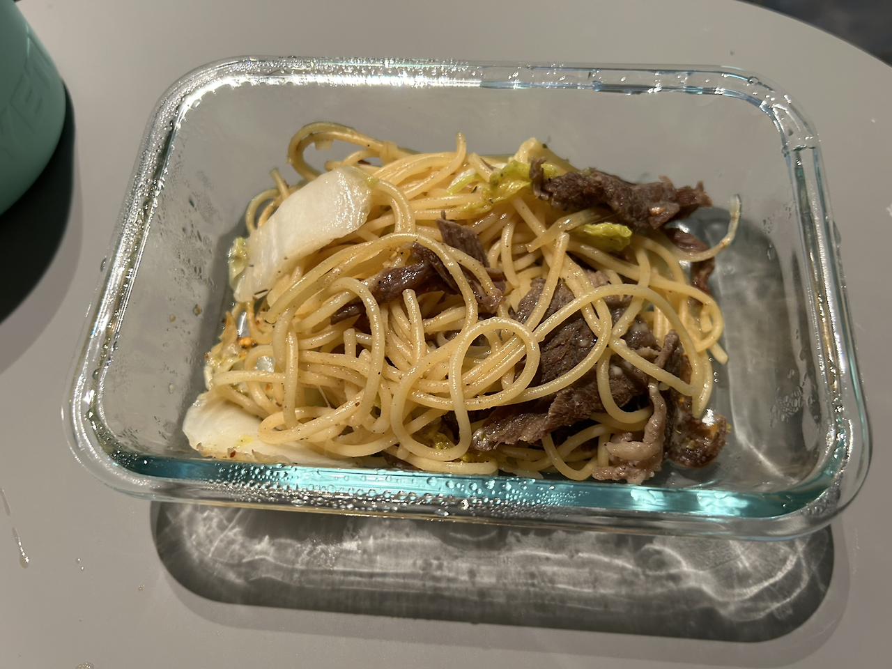 아또베(아침 또 베이글이라는 뜻). 점심은 김치볶음밥 했고 저녁은 마라소스를 넣은 중국식 면요리~. 레시피 불명이고 창작 요리.