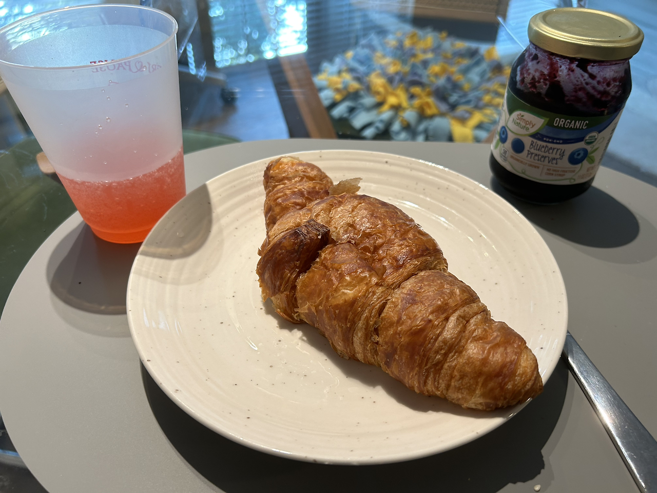 크루아상 블루베리 잼으로 아침. 블루베리 잼은 좀 실망스럽다. 블루베리 맛이 안남. 점심은 저속노화 한 상.