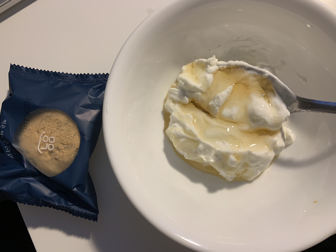 오후에 회사 갔더니 도넛이 있길래 냉큼 집어왔다. 사진을 찍는 건 깜빡했지만 도리토스도 한 봉지 먹었다. 저녁으로는 파도 안 넣은 정말 떡과 어묵만 들어간 떡볶이를 만들어 먹었다.