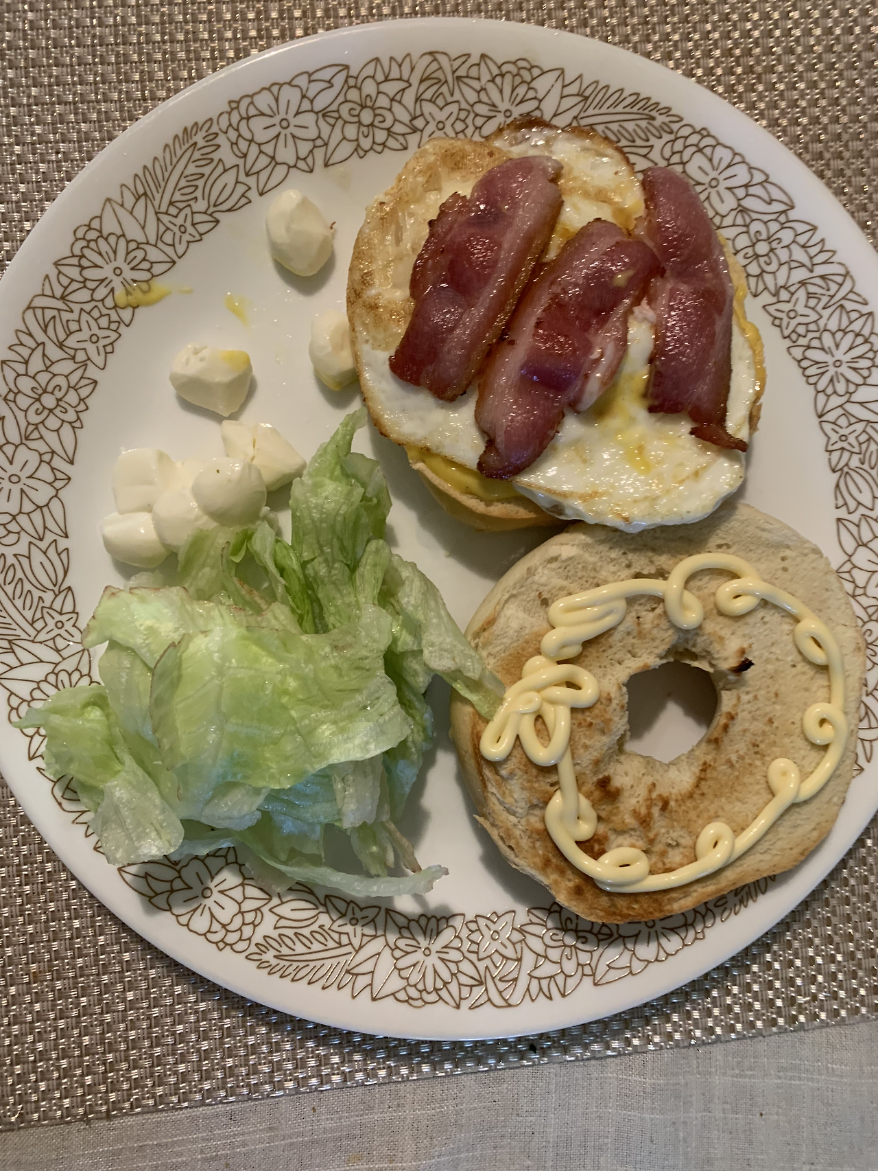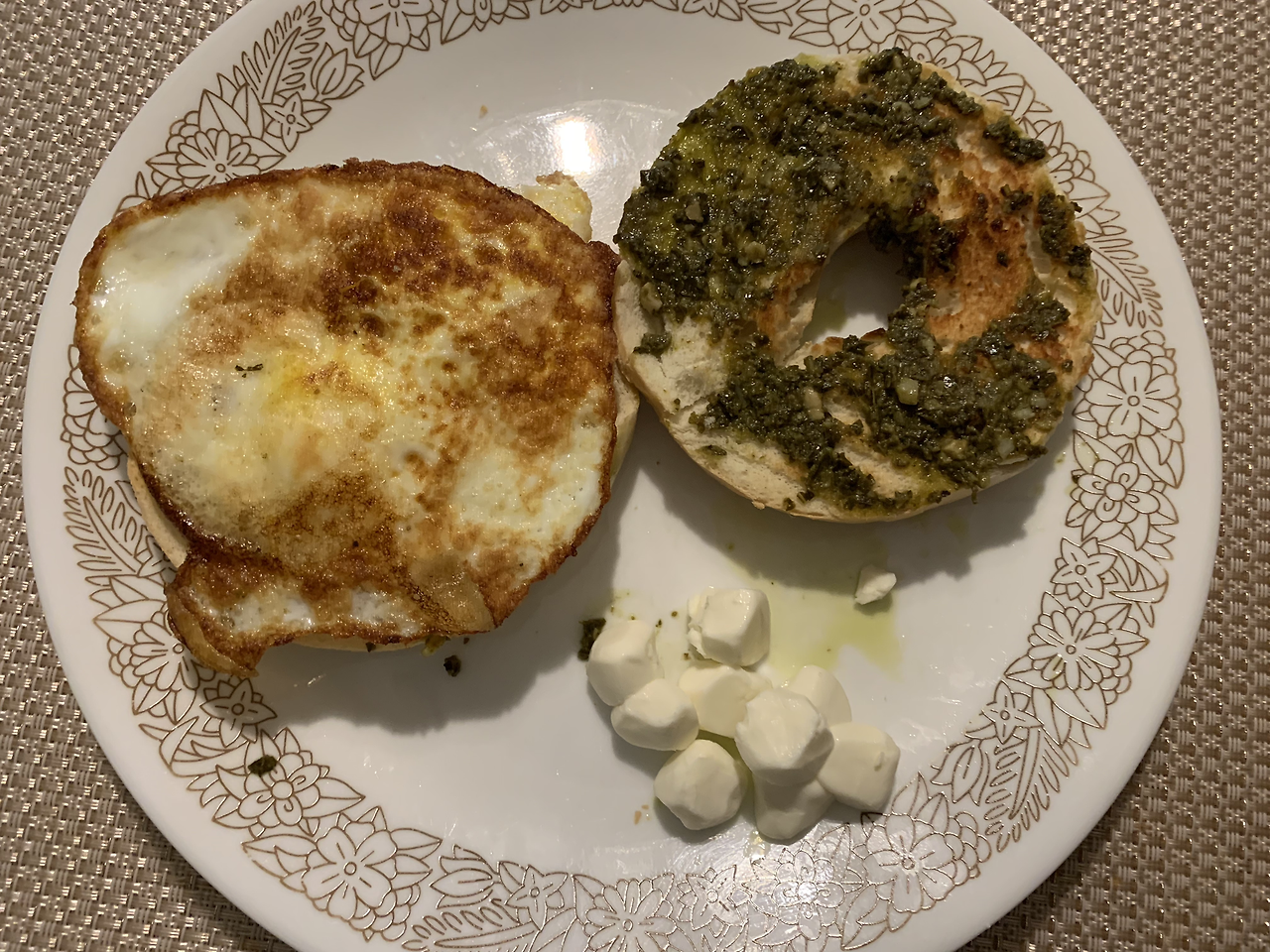 주말 아침은 차려먹는 편이다. 베이글 한쪽엔 바질 페스토를 발랐고 다른 쪽엔 계란 프라이를 올렸다. 설거지하기 귀찮아서 계란 프라이를 할까 말까 고민했지만 그냥 했다. 그리고 모차렐라 치즈 조금.