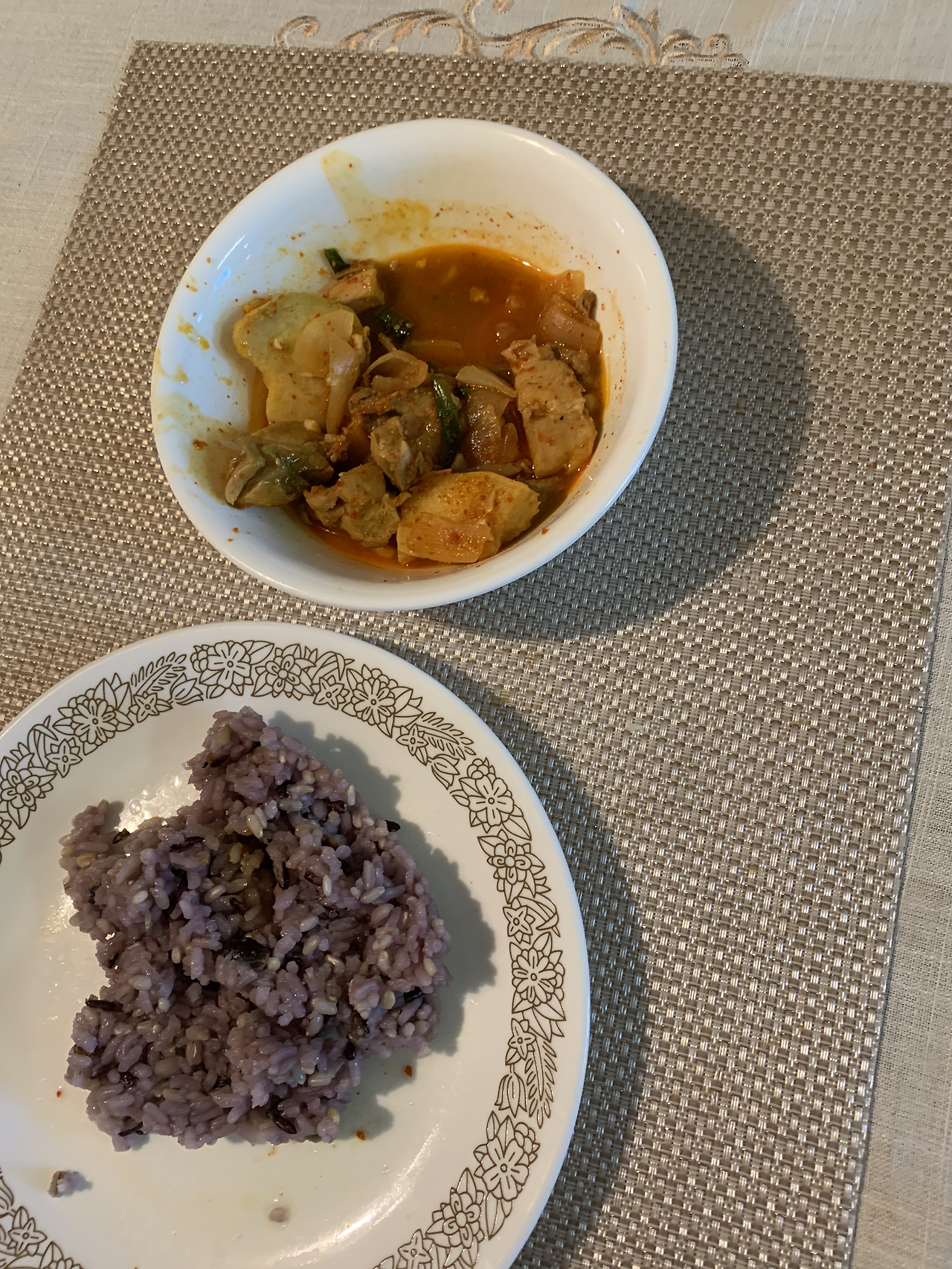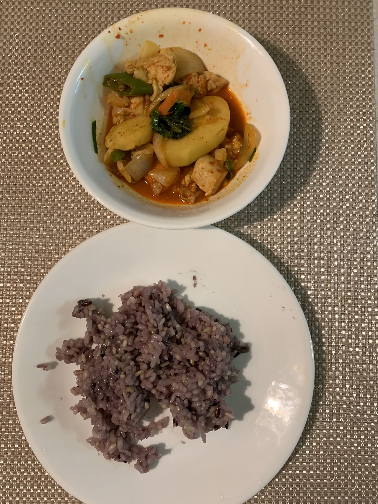 점심으로는 간단하게 해 둔 닭볶음탕 전자레인지에 돌려 먹었다. 고구마가 맛있다.