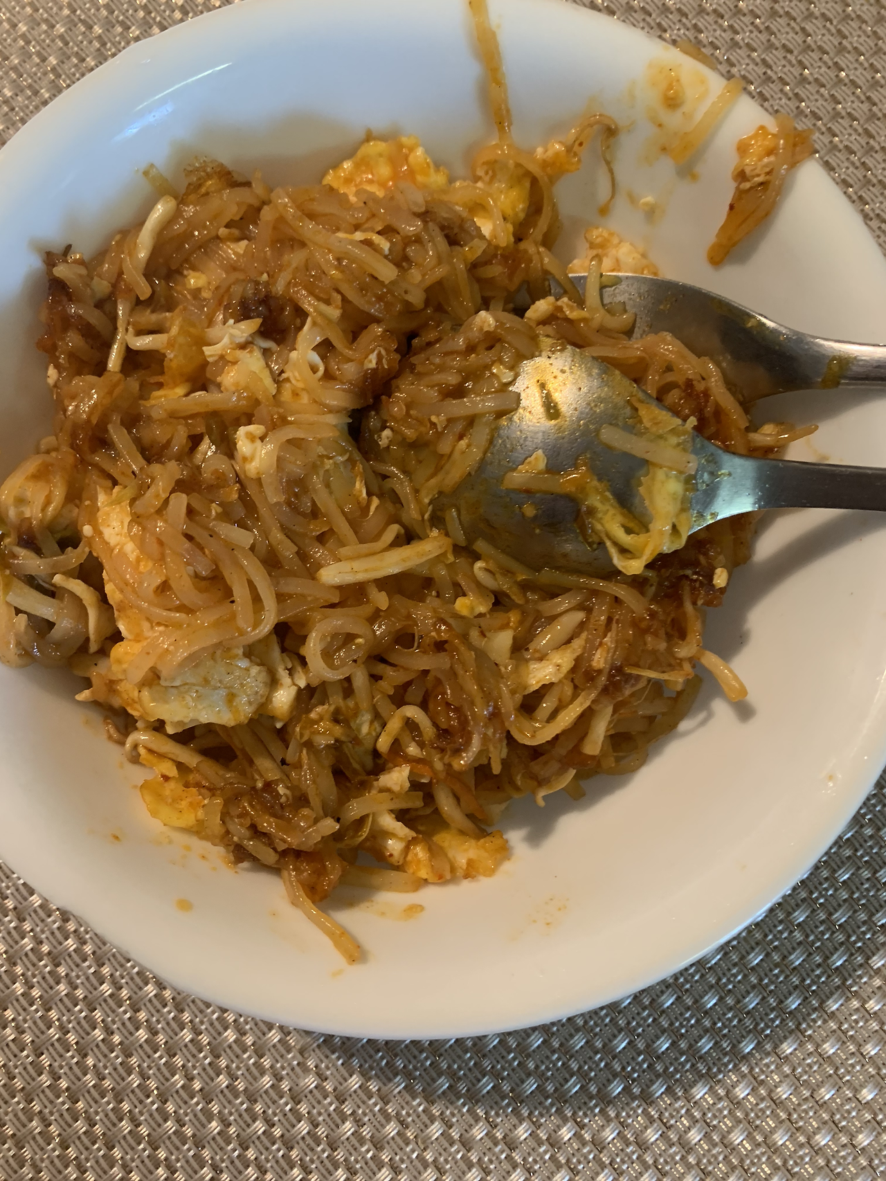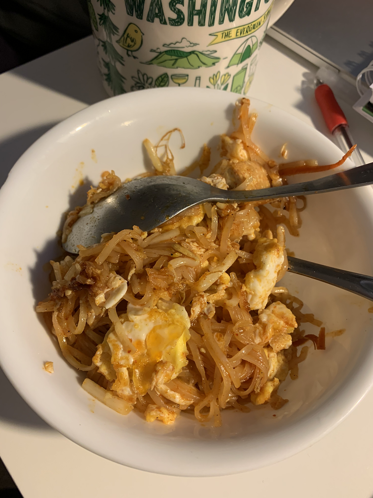 미팅이 너무 많다. 밥 먹을 시간도 없다. 그래서 애매한 시간에 먹느라 이렇게 두 끼 먹었다. 아침으로 어제 남은 팟타이에 스크램블만 추가했다.