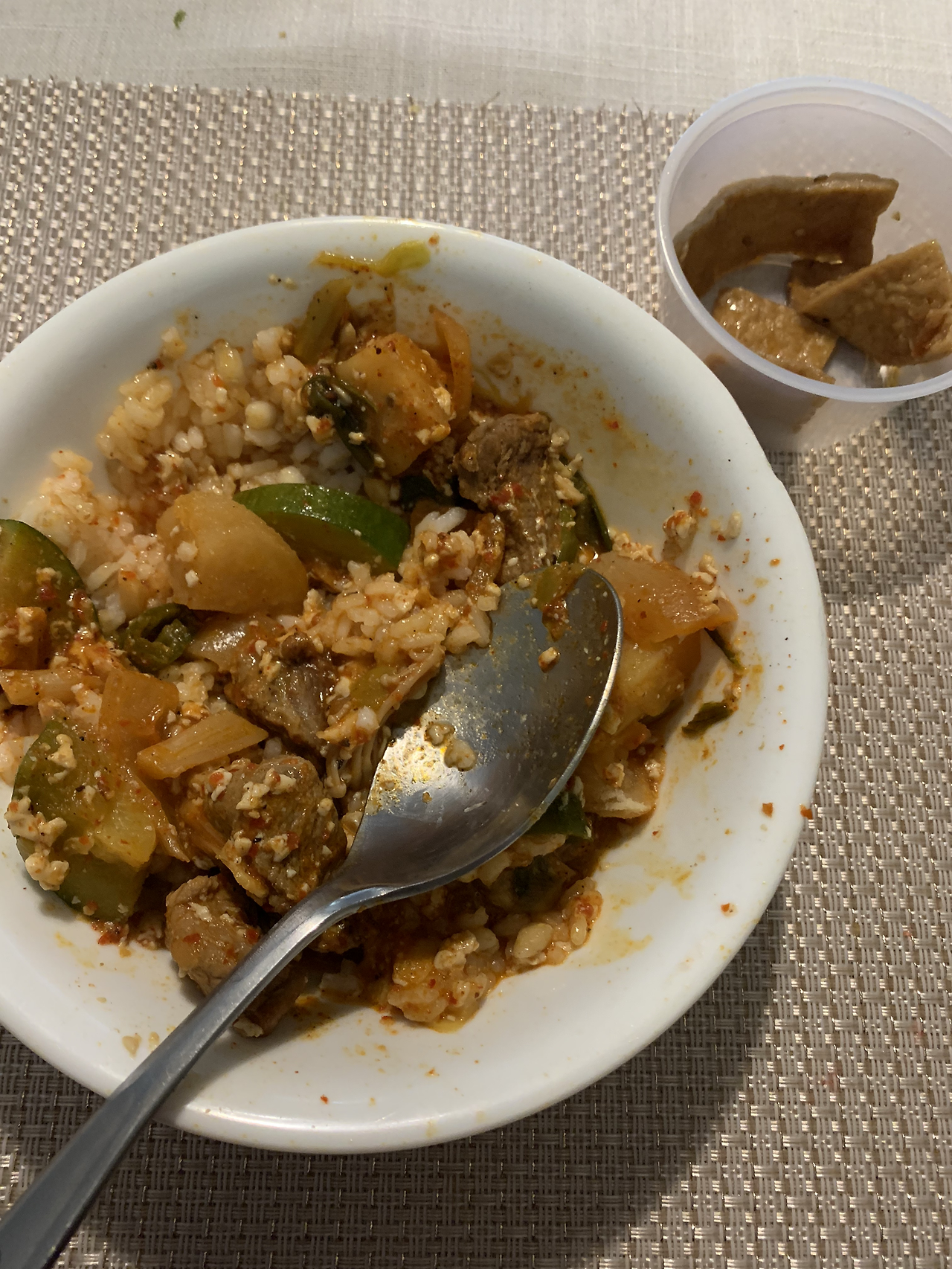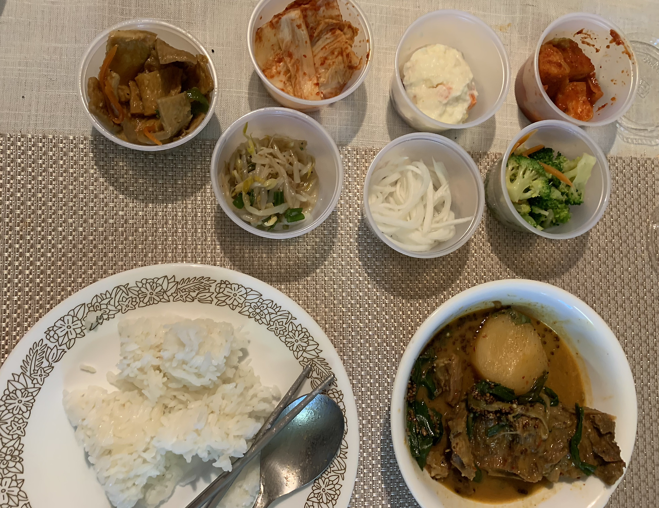 어제랑 메뉴가 복붙인 것 같은데… 팟타이는 오늘로 끝~ 한번 사서 세끼를 배부르게 먹었다 가성비 짱~. 저녁으로는 어제 먹고 남은 감자탕과 반찬을 먹었다. 감자탕도 두세 번 정도 더 먹을 양이 남았다.