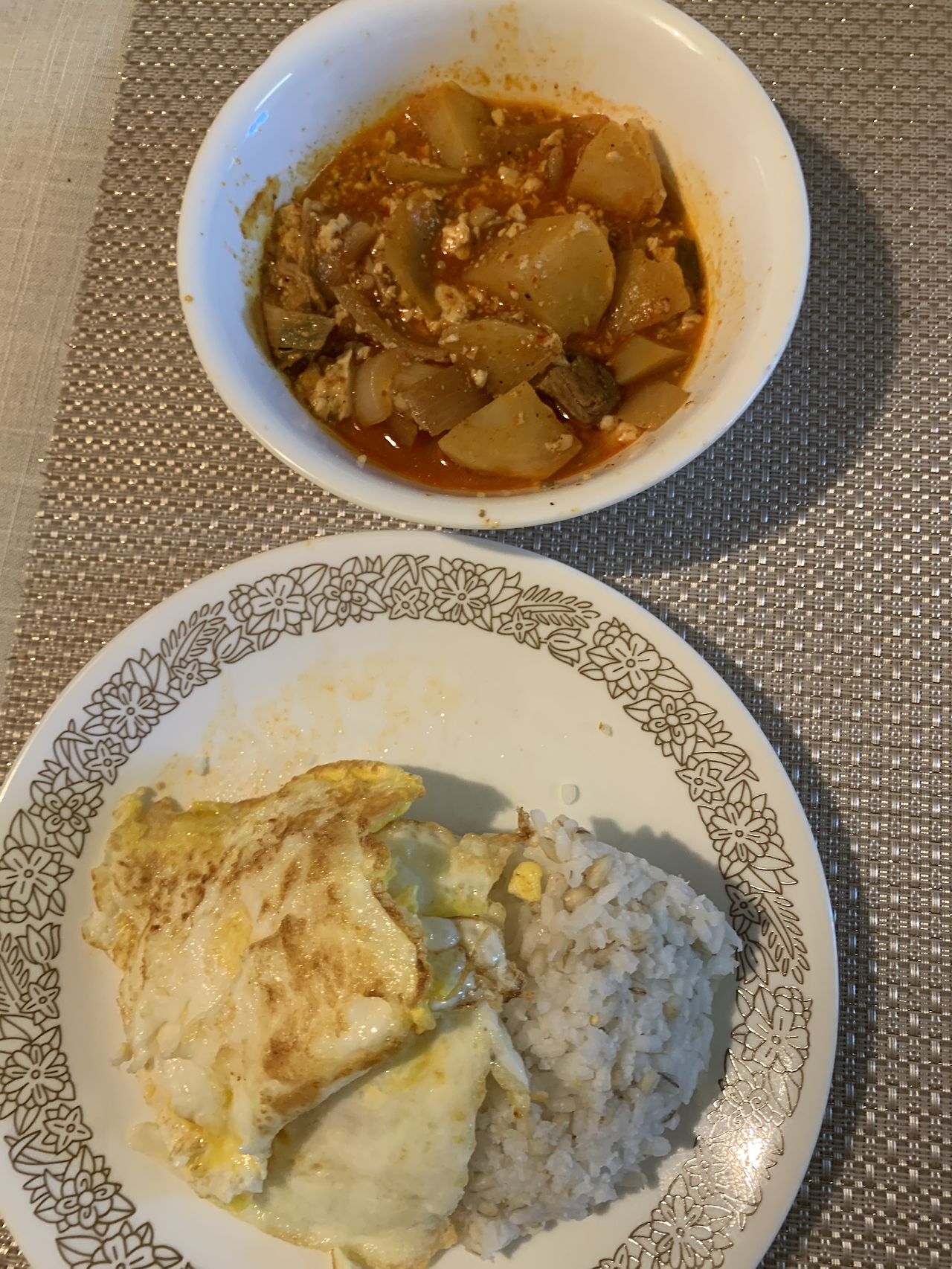 여하튼 저녁으로는 밥, 계란 프라이, 그리고 고추장찌개를 먹었다. 단백질이 부족했으니까 계란 프라이는 두 개.