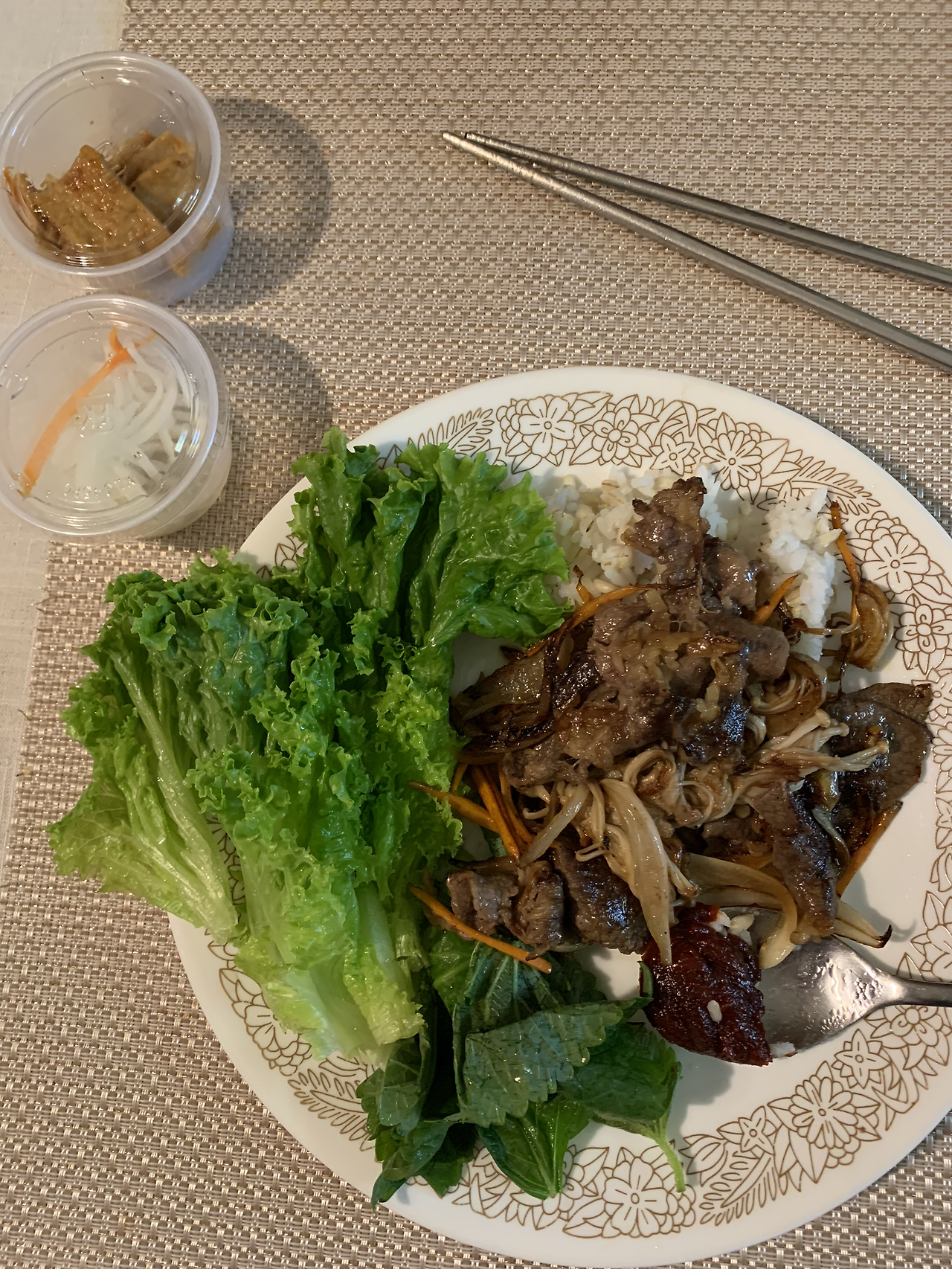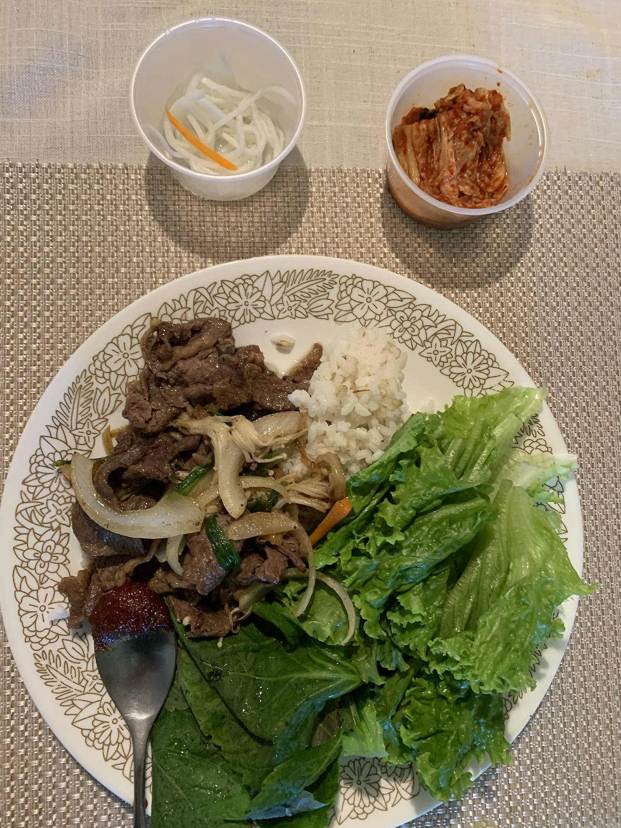 점심으로는 파파존스 피자. 그리고 회사 커피머신에서 바닐라 라테를 뽑아 마셨다. 저녁으로는 불고기를 먹었는데 채소도 많이 먹었다. 조금이라도 건강을 챙기려는 나의 노력^^ 아침과 점심에서 망했지만.