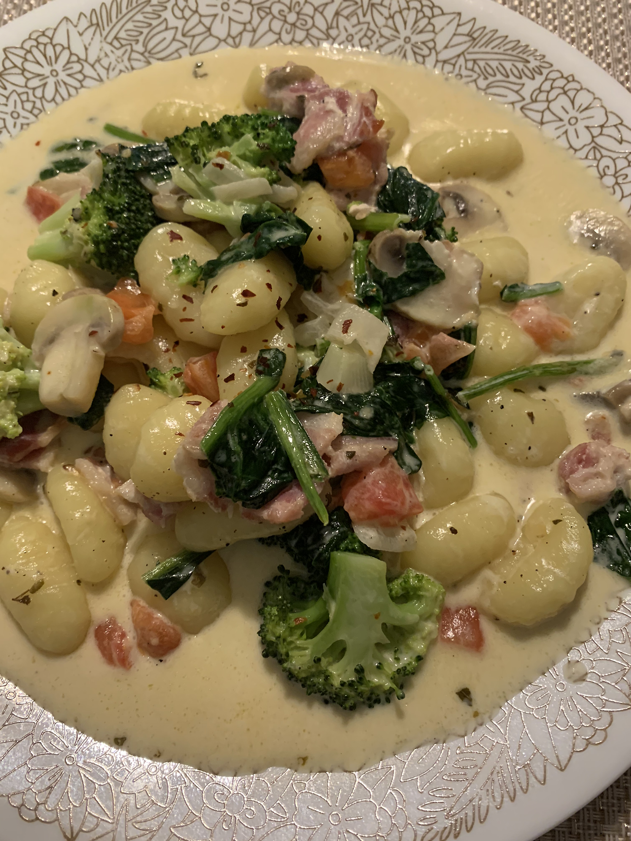 저녁으로 뇨끼 먹었다. 오늘 장을 봐서 이것저것 많이 들어갔다. 건강 생각해서 별로 안 좋아하는 버섯이랑 브로콜리도 넣었다.