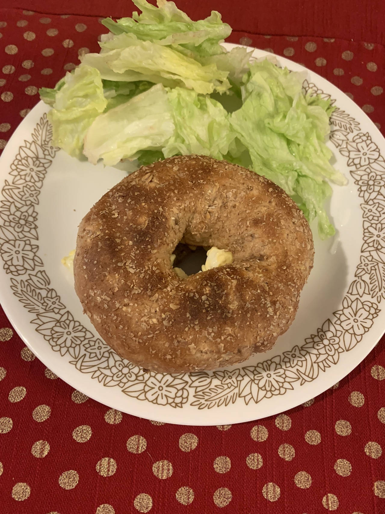 아침으로는 에그 마요 베이글과 양상추. 베이글 샌드위치 만들 때 까먹고 넣지 않은 그 양상추다.