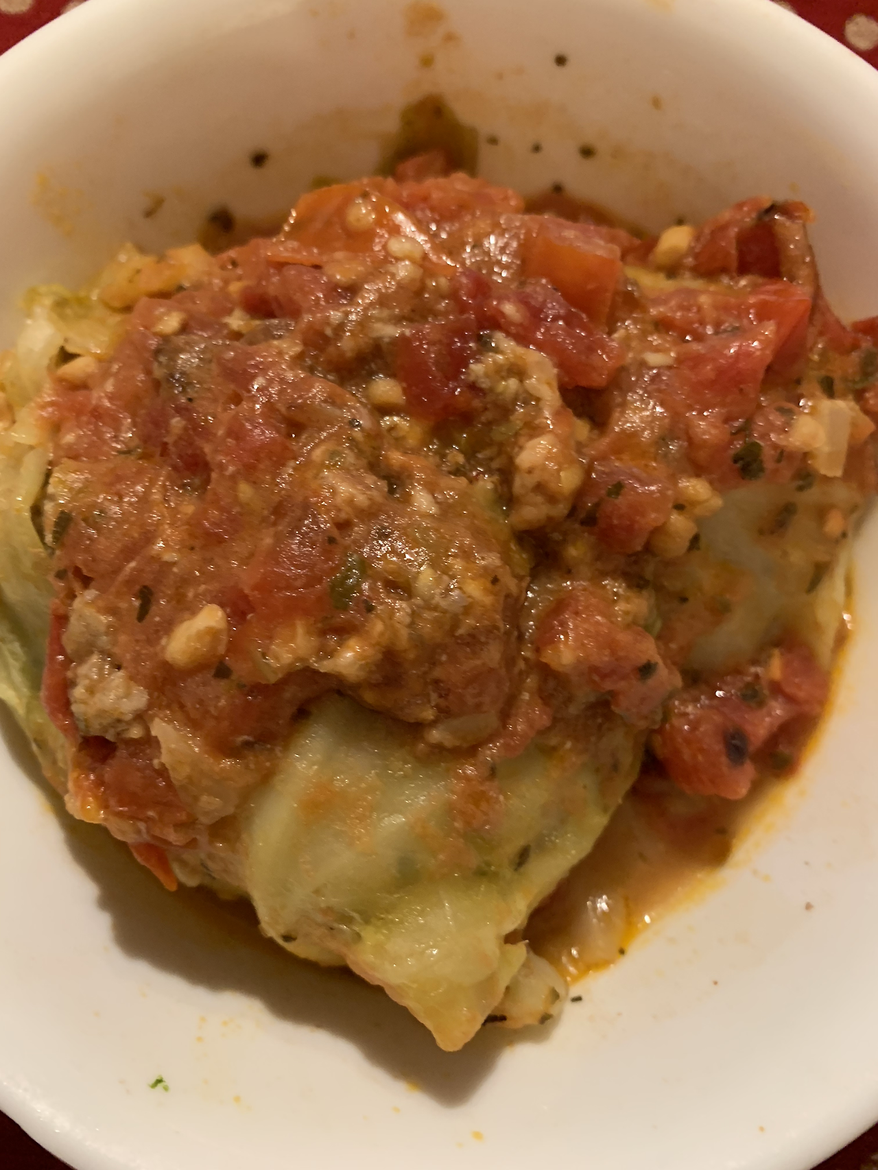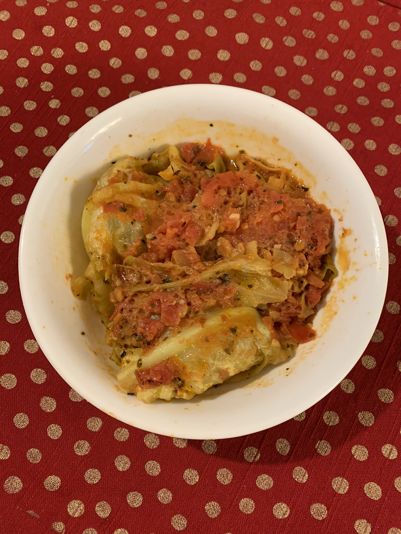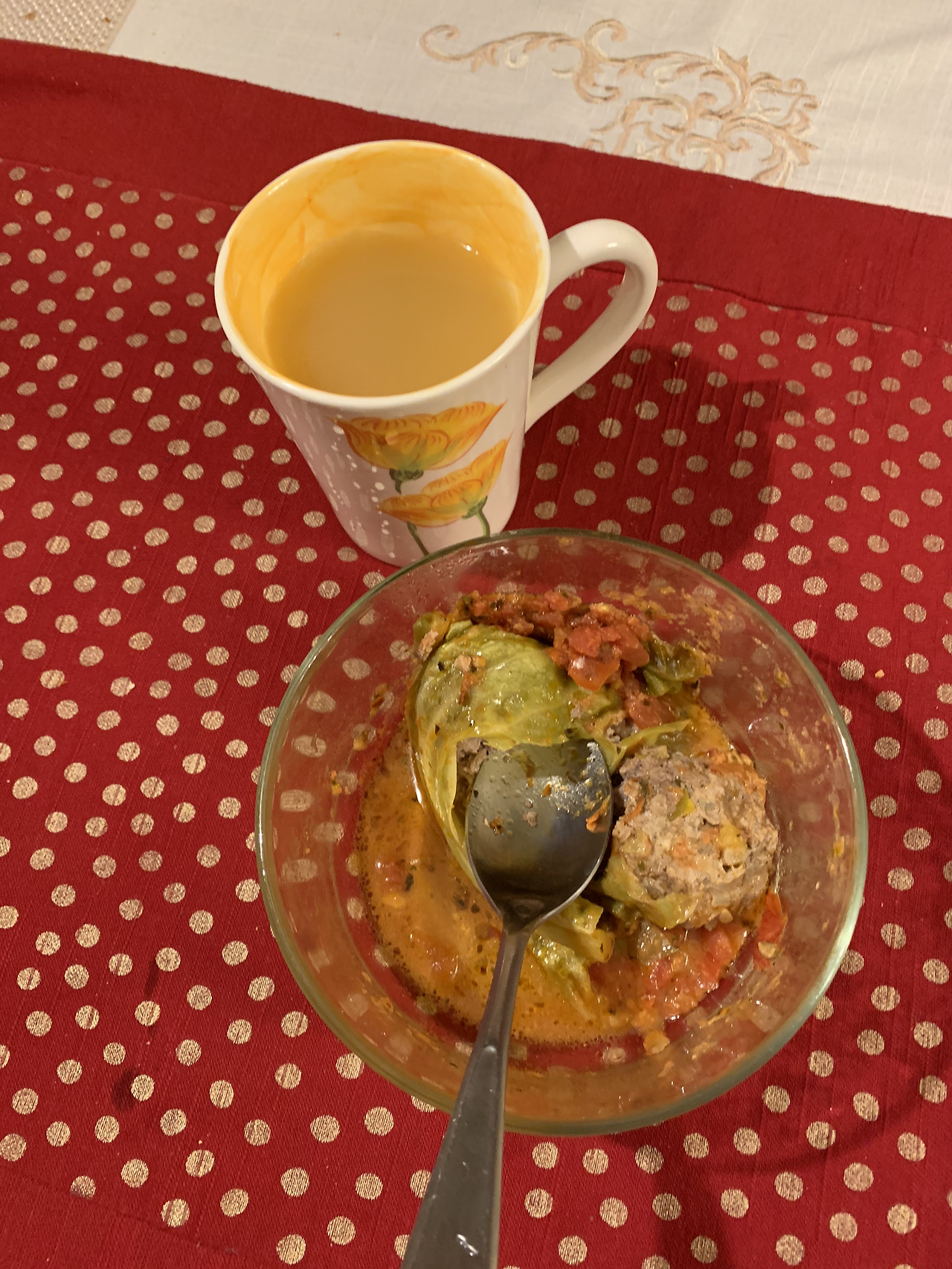 저녁으로는 양배추 미트로프를 했다. 처음 들어보는 음식 같다면 맞다. 대충 양배추에 다진 고기, 양파, 피망, 당근을 넣고 토마토소스(생 토마토를 이용)에 찐 음식인데 꽤 맛있다. 어쨌든 양배추도 있고 고기도 있고 토마토 있으니까 건강하지 않을까? 간은 소금으로만 했다.