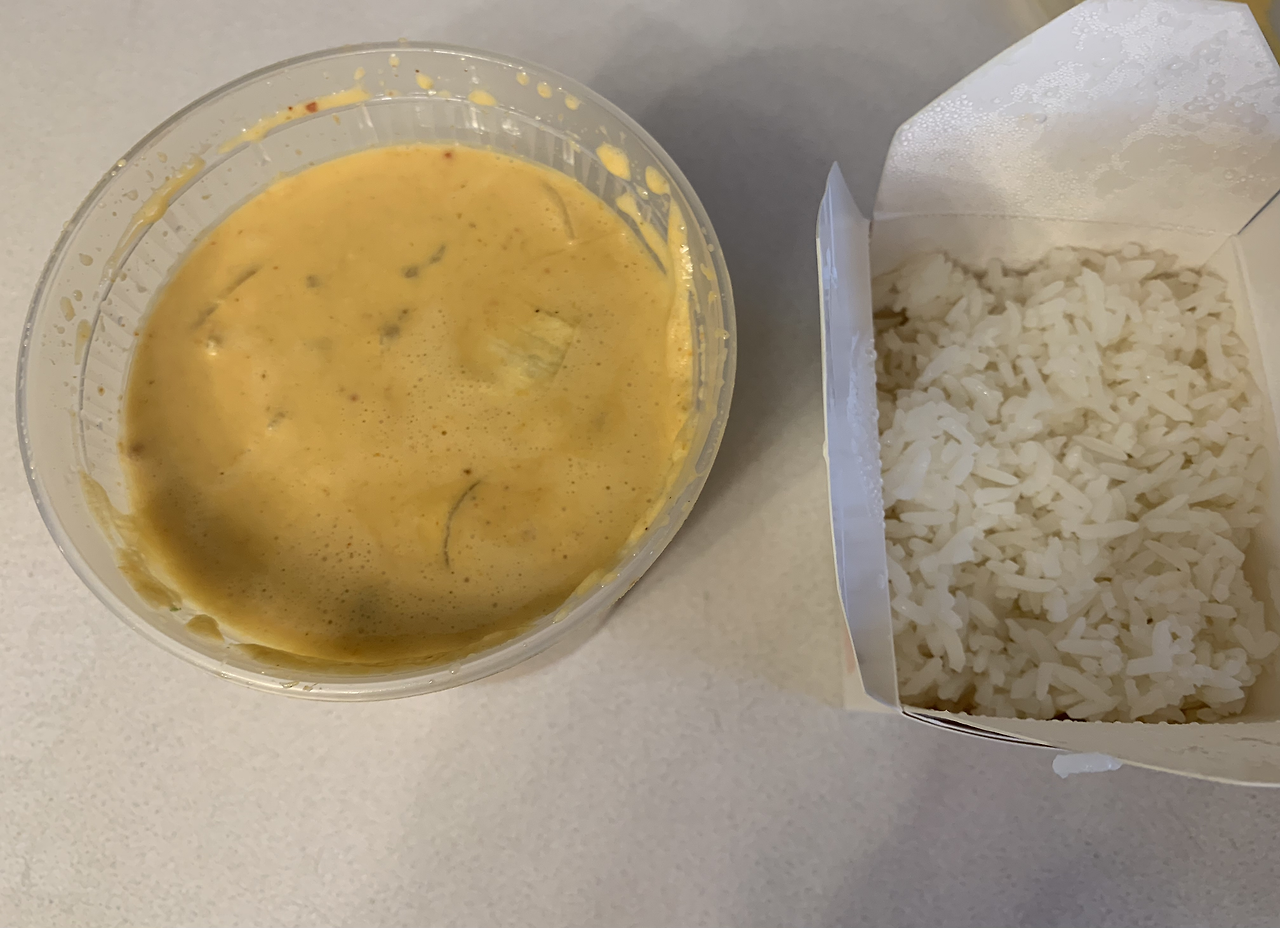 점심으로 태국 카레 배달시켰다. 많이 핑계긴 하지만 일이 바쁘면 배달 음식에 더 손이 가긴 한다ㅠㅠ. 내가 시킨 카레는 마사맨? 이라는 카레인데 달달한 편이라 좋아한다. 양이 많아서 반만 먹었다.
