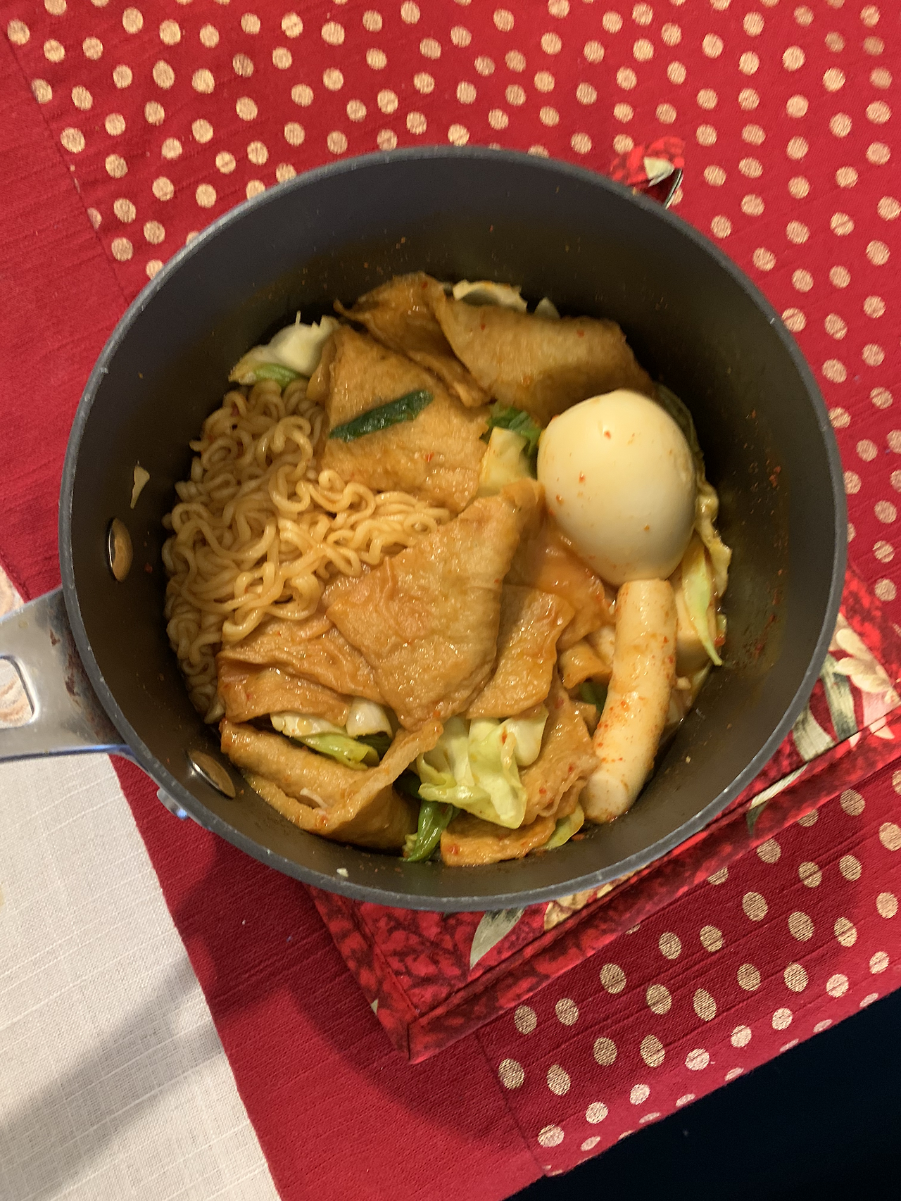 점심으로는 라볶이. 라볶이에는 라면 수프를 넣으면 더 맛있다. 떡볶이는 고추장과 케첩!