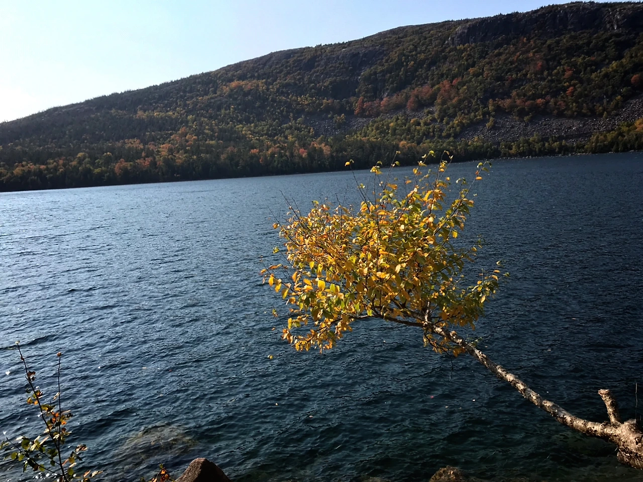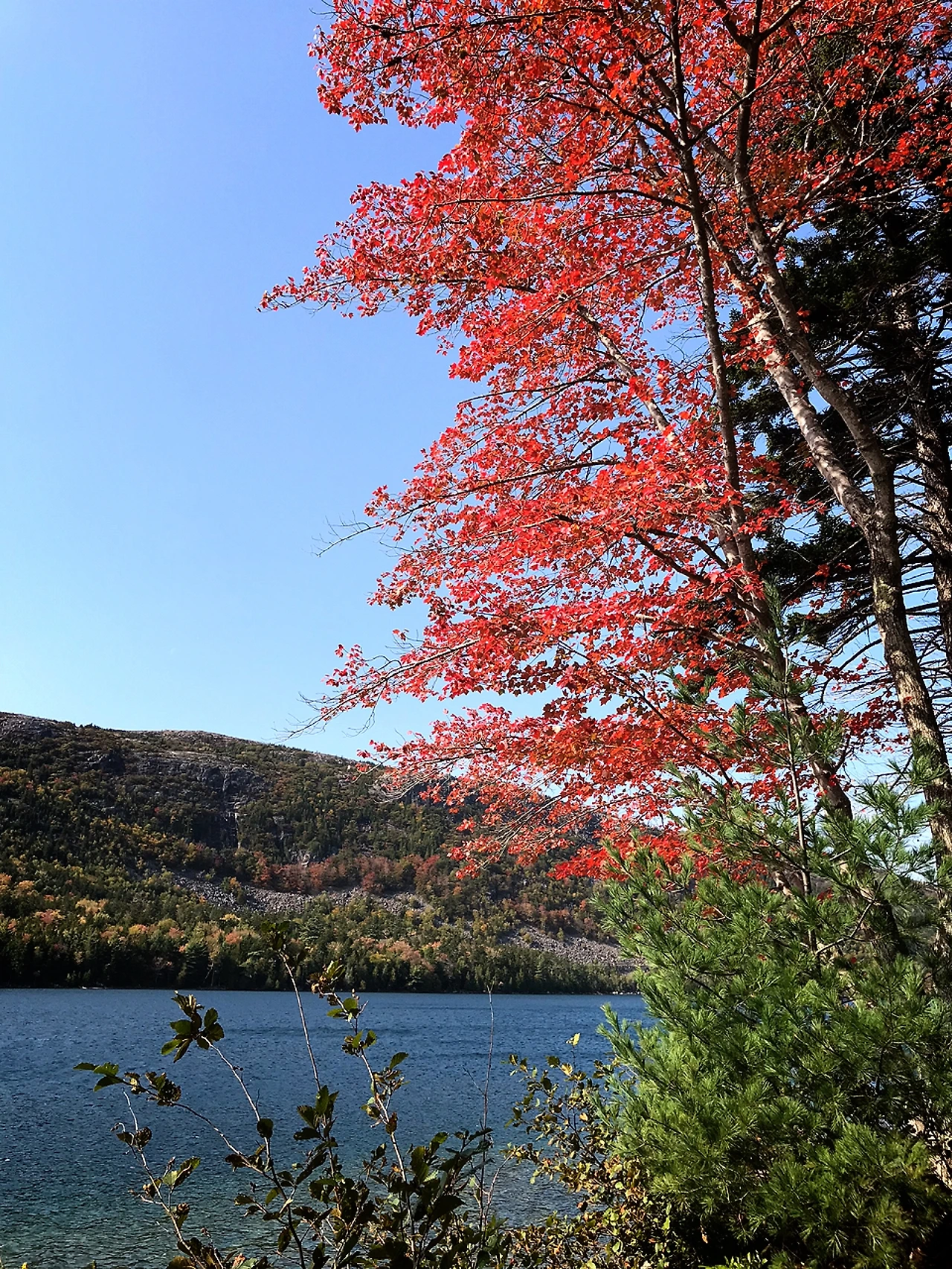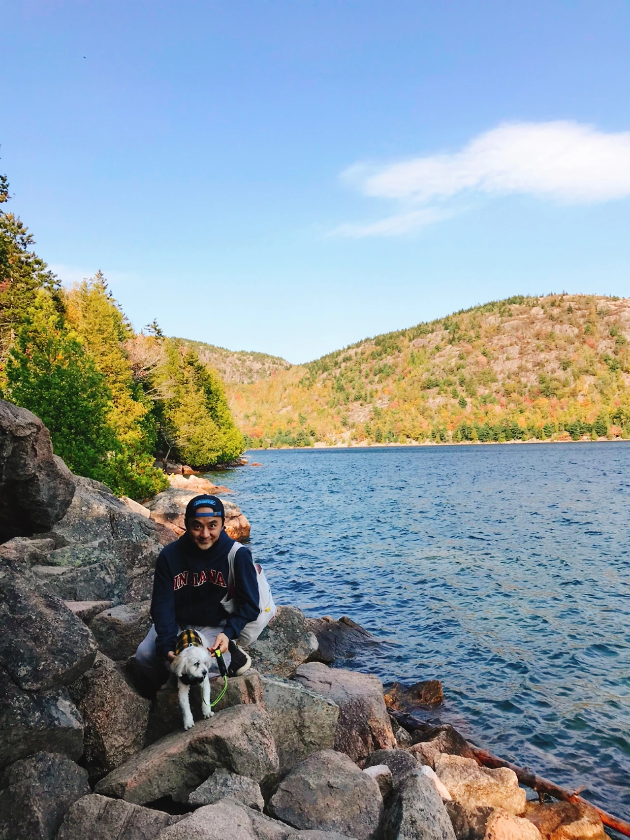 호수와 산 그리고 단풍. 하이킹하기에 춥지도 덥지도 않은 적당한 날, 2시간 30분 정도 Jordan pond를 한 바퀴 돌았다. 남편이 입고 간 인디애나 후드티를 보고 반가워하는 다른 두 커플을 연속해서 만났다. 모이는 처음으로 산과 돌, 나무 길을 지나 견생 처음으로 자그마치 아카디아 공원을 하이킹했다.