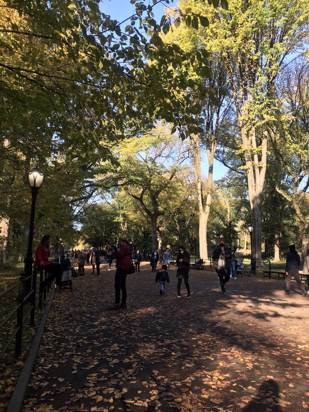 할로윈이라고 잔뜩 차려 입은 사람들이 둘러싼 센트럴 파크를 가로질러 걸었다. 적당하게 차가운 바람과 미련스럽지 않을만큼 쏟아지는 햇살이 푸른 잔디와 떨어지는 낙엽 사이를 골고루 채워주었다.
