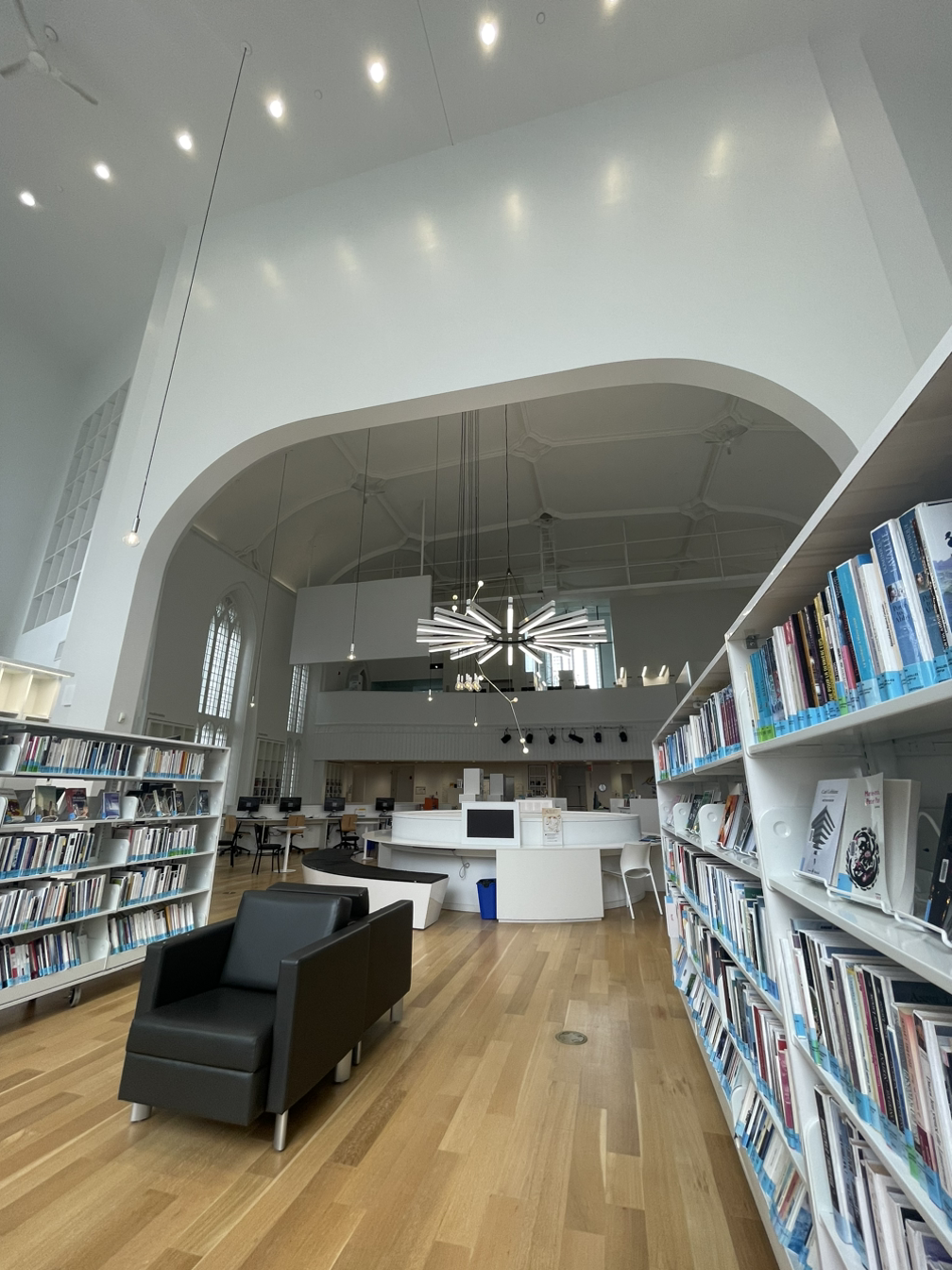 다음 날 갈 곳은 보통 전 날 밤에 결정하는데, (참고로 나는 극 J) 오늘의 목적지는 도서관이었다. 두 군데를 다녀왔는데. 1848년에 교회였던 곳을 공립 도서관으로 재건축한 Maison 도서관은 깔끔하고 모던한 디자인이 인상적인 곳이었다. 1-2층을 가는 동안 사람이 한 명도 없어서 집중해서 공부하거나 독서하기에 좋을 것 같았다. 3층으로 올라가니 컴퓨터와 작은 회의실이 있었고, 사람들이 조금 있었다. 이곳은 로컬 사람들을 위해 다양한 이벤트를 많이 진행하는 것 같다.