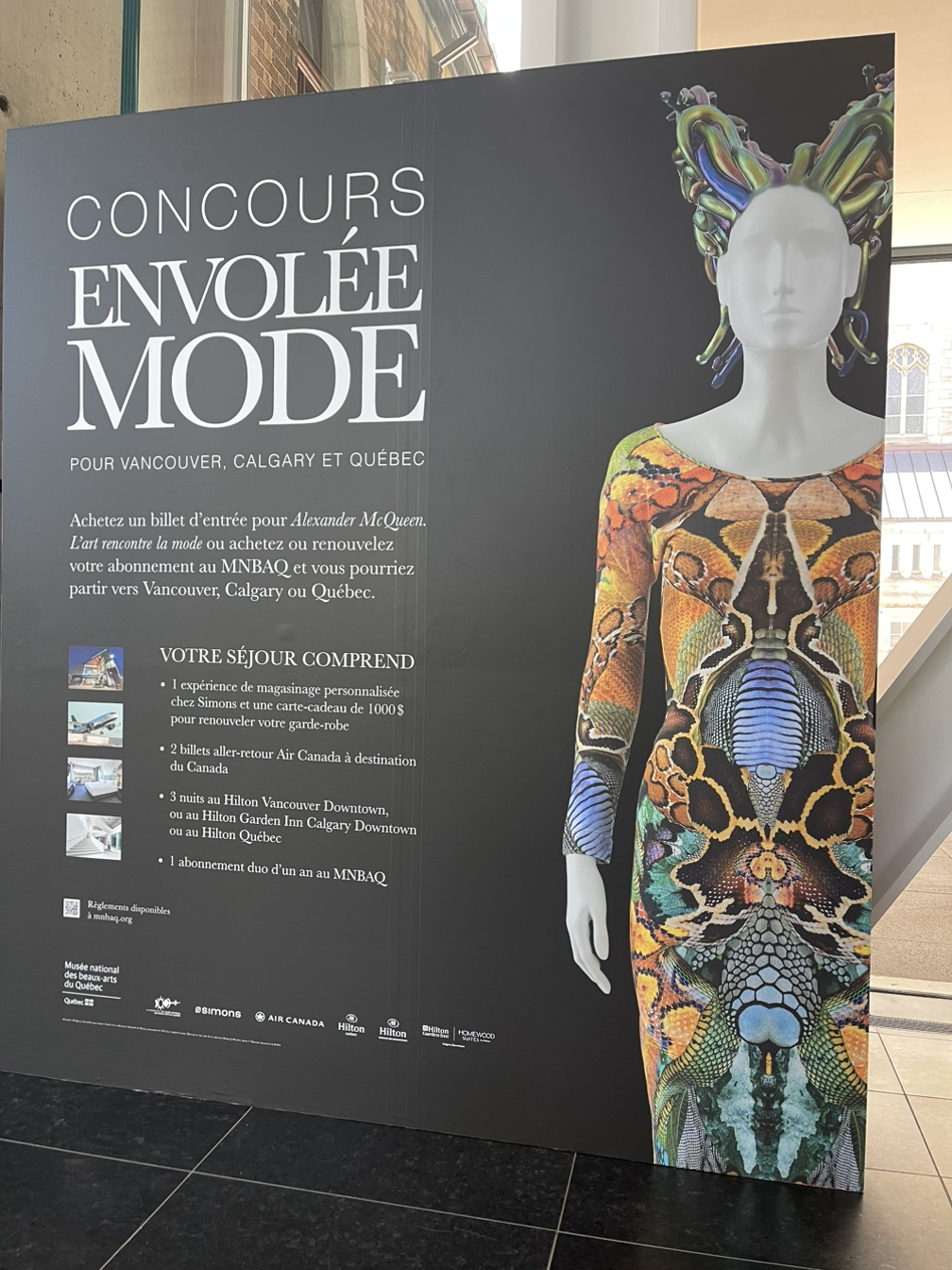 세계적으로 총망받는 디자이너이자 아트스트였지만 40세에 자살로 생을 마감한 그의 삶은 살아 있는 동안은 행복했을까. 천재는 단명한다고 하지만 타인의 주목을 받는 삶은 보이는 것이 전부는 아니었을 것이다. 맥퀸의 전시 이외에 2층과 테라스가 있는 3층도 둘러보았지만 생각보다 컬렉션이 적었고, 미술관 외관에 비해 내실이 약한 것이 아쉬웠다. 퀘벡 시티에서 가장 가볼 만한 미술관이라고 해서 기대를 했는데 인상적인 작품을 찾지 못했다.