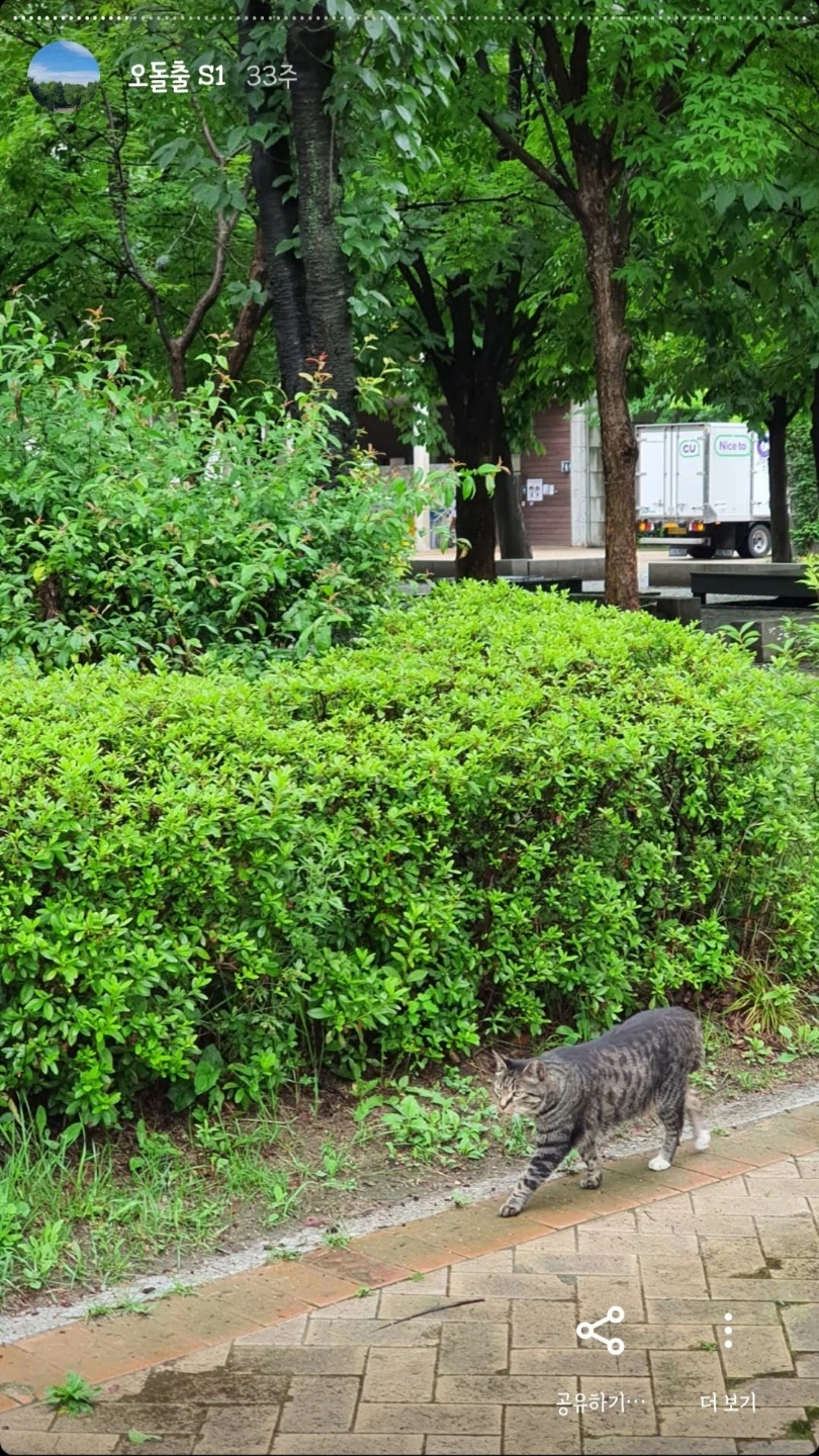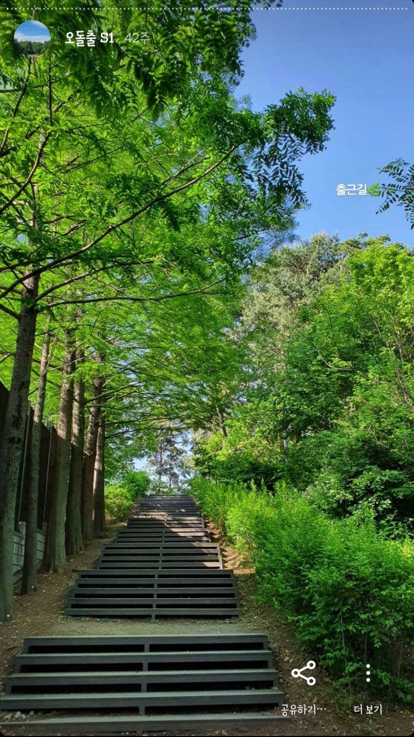 오분 돌아가는 출근길에 만나는 장면을 찍어 인스타그램 스토리에 공유하면서, 맑은 날에는 파란 하늘을, 비가 오면 더욱 진해진 자연의 색과 흙내음을, 흐리고 바람 부는 날엔 다소 을씨년스러운 공원의 모습을 담고 싶어서 일찍이 집을 나섰다.