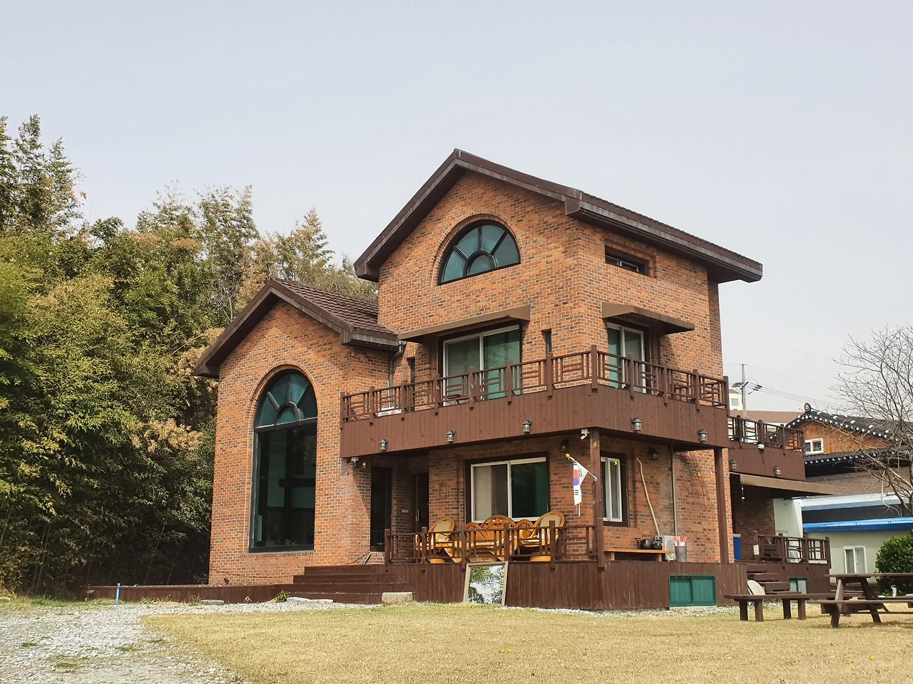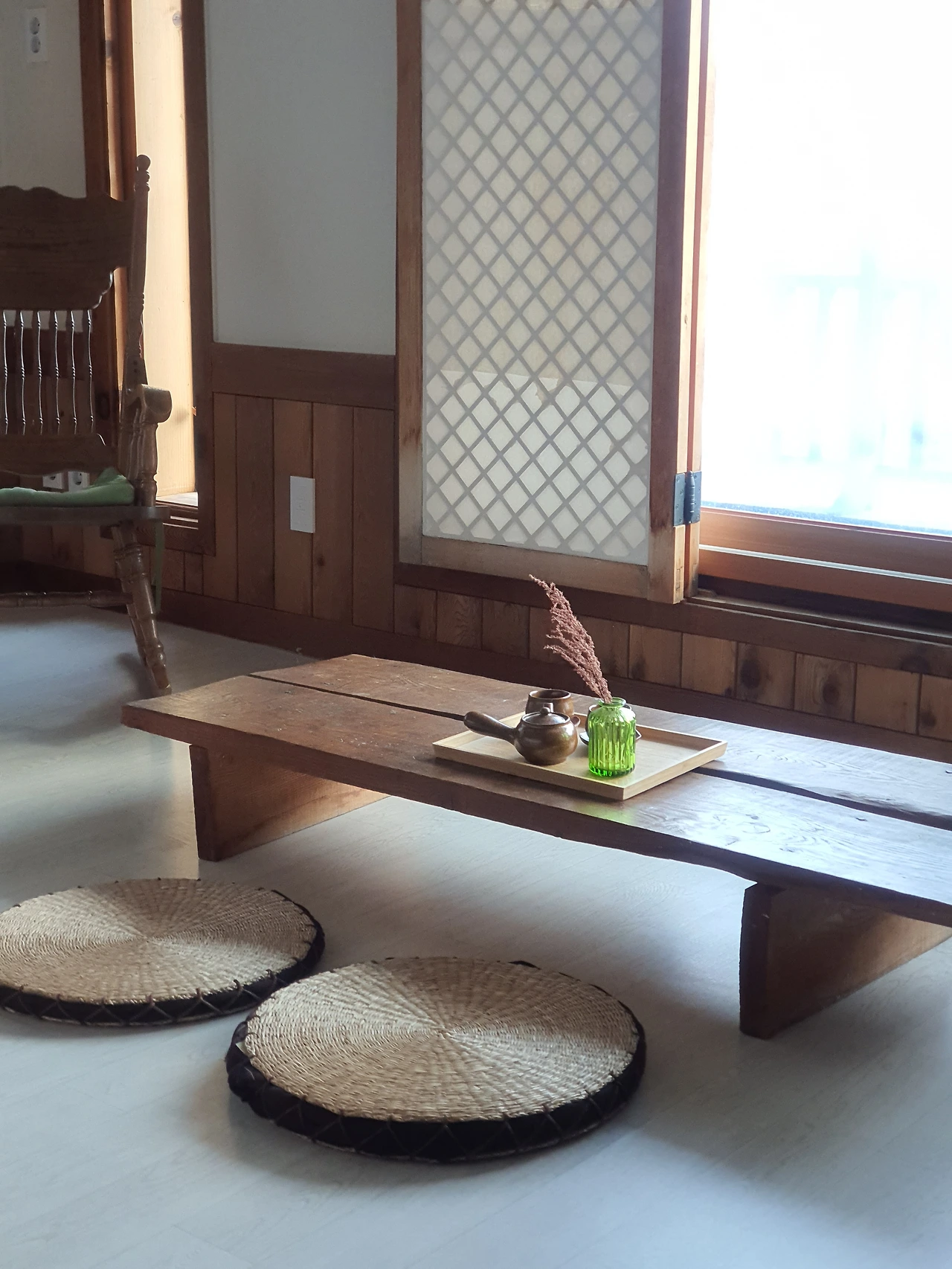 일단 사진 속 숙소의 모습이 내 눈을 사로잡았다. 커다란 통창을 통해 보이는 모악산과 쏟아져 들어오는 햇살, 그리고 높은 층고를 가진 거실은 누구나 반할만한 공간이었다. 사진 속 흔들의자에 앉아 책을 읽다 낮잠에 빠져들면, 동화 속 주인공이 된 기분이 들 것 같았다. 거실뿐만이 아니라, 단독으로 사용할 수 있는 집의 1층과 2층에는 총 4개의 방과 4개의 화장실이 있다고 했다. 여기다. 집 짓기에 관심이 많은 아빠가 참고하기에도 좋을 것 같았고, 우리 가족이 이 공간에서 머무르는 그림이 아주 자연스럽게 그려졌다.
