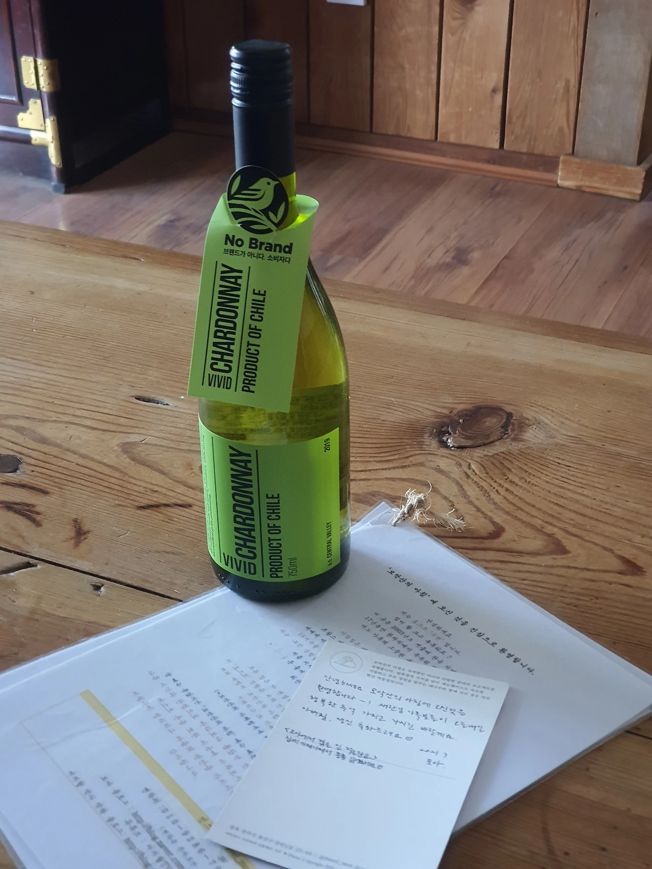짐을 옮기고 있는데, 부엌을 둘러보던 아빠가 ‘안녕하세요. 모악산의 아침에 오신 것을 환영합니다. ㅇㅇ님 가족분들이 오늘내일 행복한 추억 가지고 가시길 바랄게요’하며 엽서를 읽어 내려갔다. 아빠의 생신이라고 사전에 말씀드렸더니 부엌 식탁에 와인 한 병과 소중한 엽서를 남겨두신 것이다. 감동을 하니 자연히, 체크인 문자를 남길 수밖에 없었다.