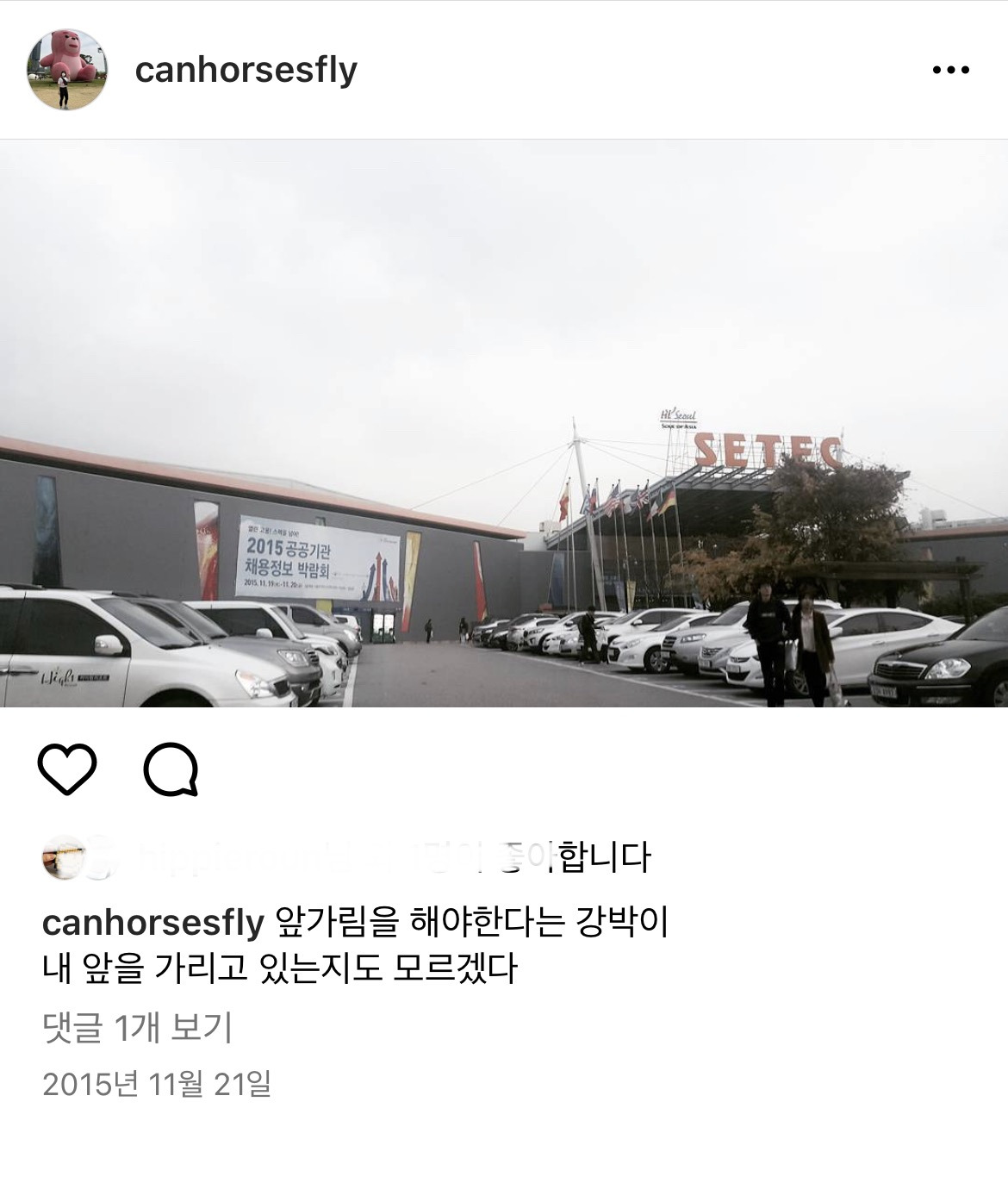 2015년 11월 21일, 취업 박람회에 다녀온 나는 인스타그램에 이 한마디를 남겼다. 앞가림이라는 단어가 나에게 주었던 무게감을 깨달았고, 이상하게도 무거운 마음을 한 줄의 문장으로 적어내며 조금은 가벼워져도 괜찮겠다는 생각을 했던 것 같다.