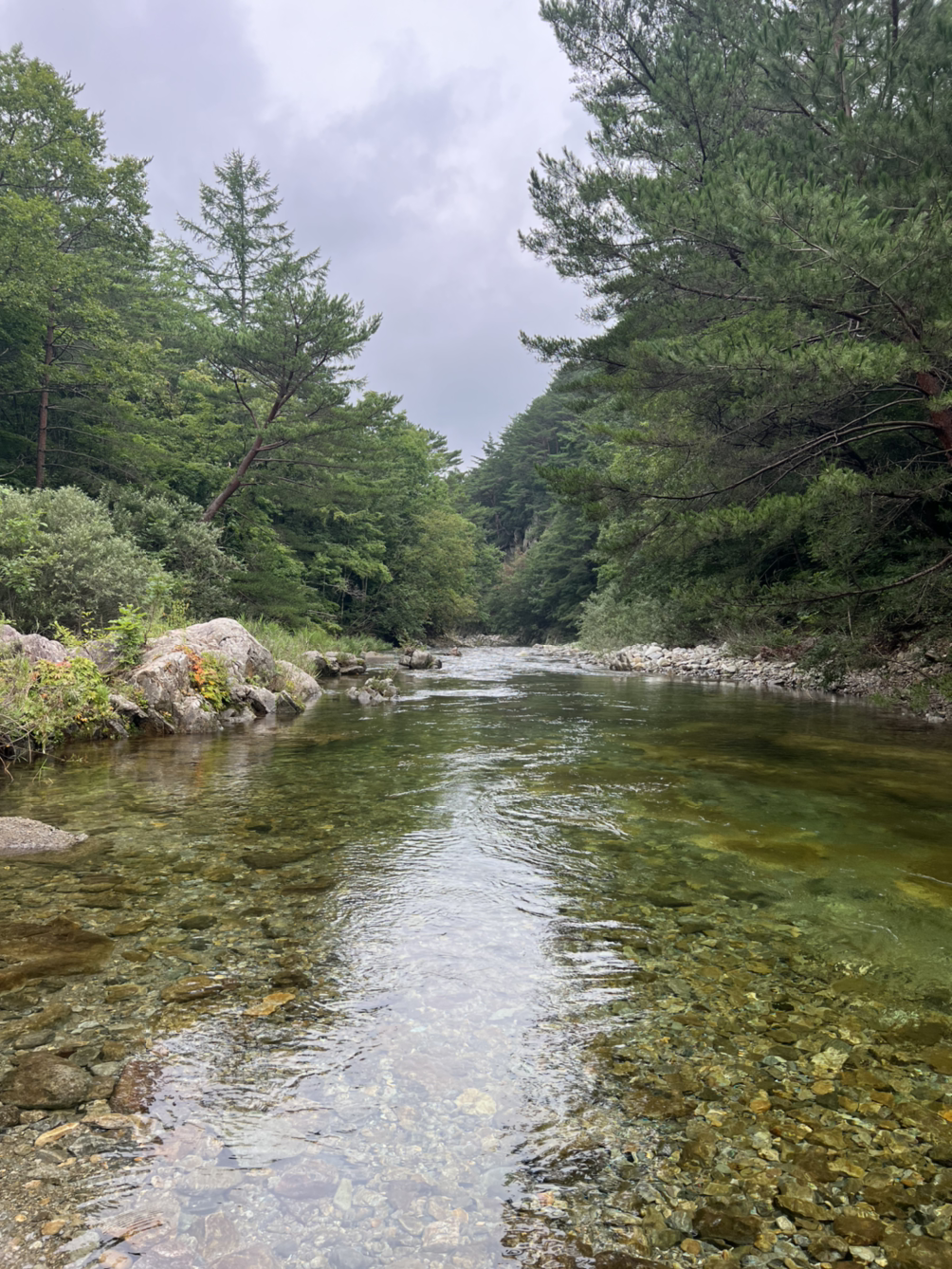 여름철 ‘아침가리 계곡’은 워낙 유명한 피서지라, 차가 막히는 것과 사람이 많은 것 모두를 끔찍이 싫어하는 우리에게 다른 선택지는 없었다. 아니나 다를까, 찾아보는 후기마다 서울에서 새벽같이 출발했는데 4시간이 걸렸다느니, 주차장에 자리가 없다느니, 사람이 많아 줄을 지어 이동했다느니 하는 문장이 우리를 겁주듯 곳곳에 자리해 있었다.
