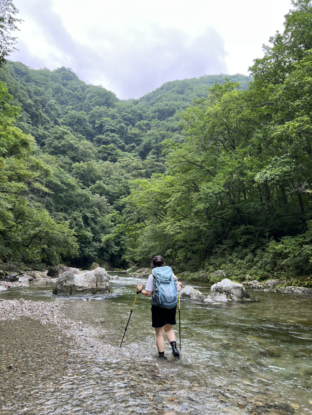 그날은 온종일 “꿈같다”라거나, “너무 좋다”라는 말을 몇 번이나 내뱉었는지 모르겠다. 더위라고는 한순간도 느낄 수 없었고, 계곡물에 발을 담글 때마다 피로가 풀려 힘들 틈이 없었다. 세찬 물살에 때로는 조심조심 한 발씩 떼어가며 걷고, 적당히 모여 흐르는 물을 발견하면 가방을 내려놓고 몸을 담갔다.